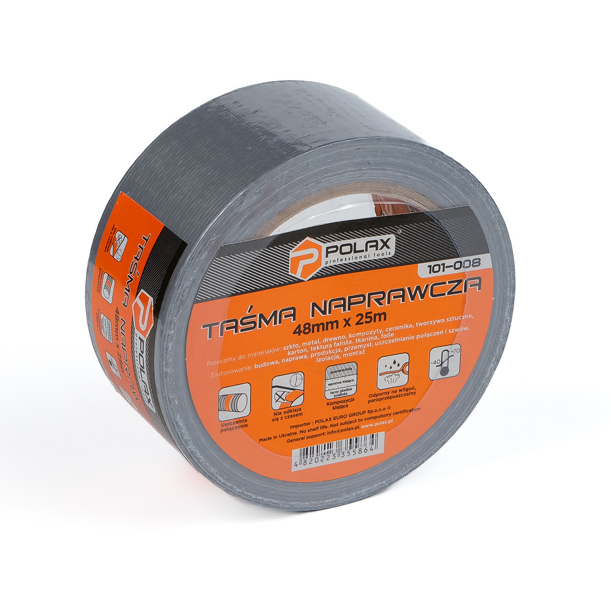 Taśma zbrojona to uniwersalny rodzaj taśmy budowlanej, charakteryzujący się zwiększoną wytrzymałością, niezawodnością, elastycznością, właściwościami izolacyjnymi i wodoodpornymi. Służy do łączenia powierzchni, uszczelniania szwów, montażu paneli, izolowania elementów elektrycznych, zamykania szczelin, łączenia rur, usuwania wycieków, a także do pakowania ładunków masowych. Uniwersalna taśma wzmacniana zwana jest także taśmą tkaninowo-polietylenową (TPL) lub taśmą techniczną. To doskonały pomocnik każdego profesjonalnego lub domowego rzemieślnika, który z pewnością znajdzie miejsce w zestawie niezbędnych narzędzi. Wysokiej jakości taśmę zbrojoną możesz kupić w sklepie internetowym z narzędziami Polax. Główną różnicą między taśmą zbrojoną a zwykłą jest taśma PCV wzmocniona włóknami tkaninowymi, pokryta specjalnym klejem i laminowana polietylenem. Wzmocnienie nie tylko wzmacnia taśmę, ale także nadaje jej trwałość. Wytrzymała taśma PCV w połączeniu z super mocnym klejem i włóknem szklanym wykazuje dużą wytrzymałość, odporność na wysokie i niskie temperatury, wilgoć oraz duże obciążenia. Rozerwanie taśmy nawet przy największych obciążeniach jest niedopuszczalne, dlatego też zaleca się stosowanie takiej taśmy do zaklejania pojemników, pudeł i paczek, gdy jest to niezbędne dla zapewnienia jak największego bezpieczeństwa. Uniwersalna budowa wzmocnionej taśmy pozwala na jej szerokie zastosowanie w budownictwie, produkcji i życiu codziennym. Najczęściej stosuje się go podczas różnych prac budowlanych i naprawczych, gdzie wymagana jest izolacja przed przenikaniem wilgoci, na przykład do łączenia rur i węży. Wzmocniona taśma jest doskonałym narzędziem do izolowania połączeń, szwów i połączeń rur. Mechanicy często używają tego materiału do naprawy samochodów, a elektrycy mogą zastąpić nim taśmę elektryczną podczas instalowania przewodów elektrycznych. Z taśmą można pracować w różnych temperaturach. Aby uzyskać jak najmocniejsze połączenie, taśmę należy nawinąć zakładkowo na wcześniej oczyszczoną powierzchnię. Taśma klejąca wzmocniona Polax, 50 mm x 10 m (101-007)
