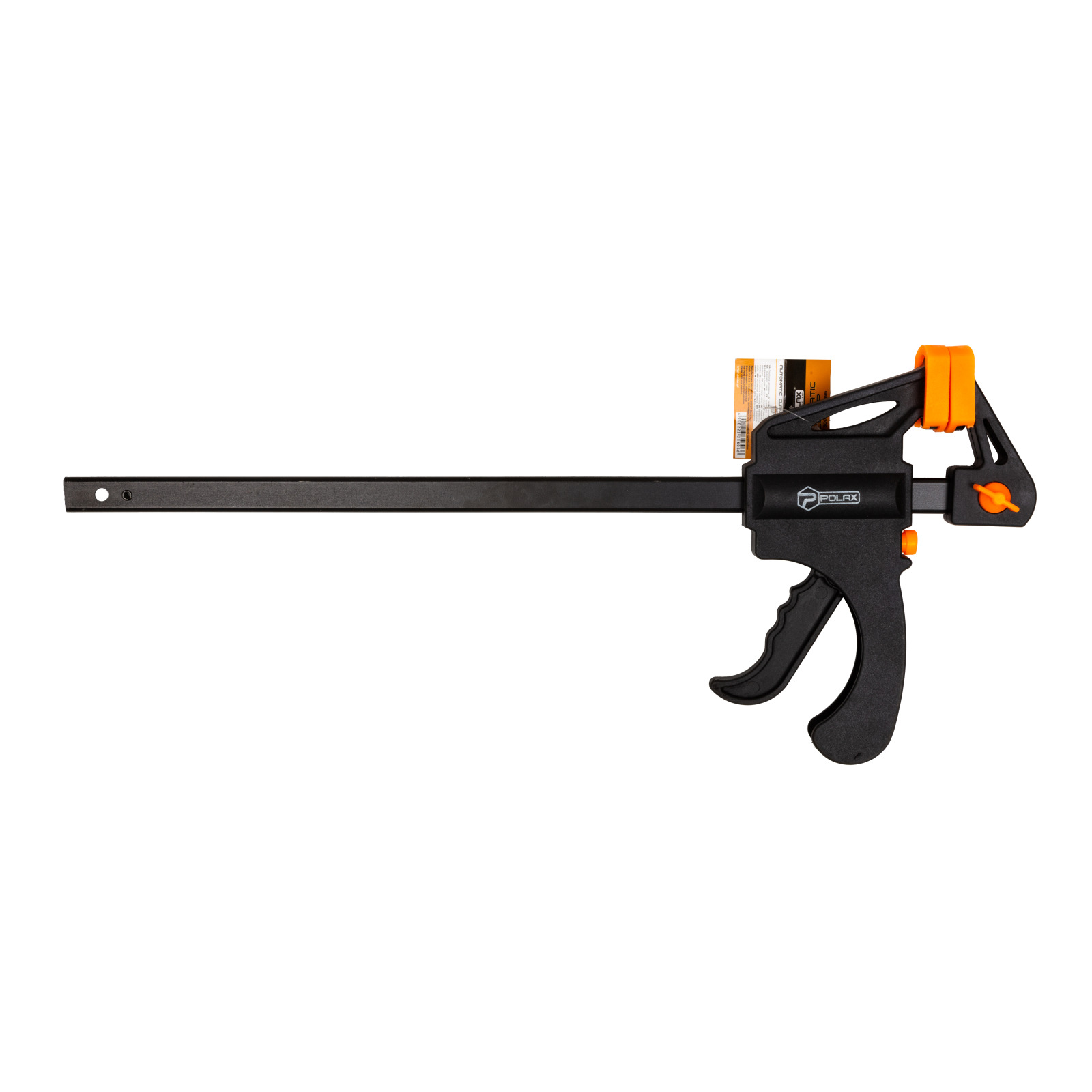 Zacisk stolarski automatyczny Polax 12" 300 x 475 x 65 mm (22-017) to nowoczesne i skuteczne narzędzie dla profesjonalnych stolarzy oraz wszystkich osób zajmujących się mocowaniem elementów podczas klejenia i obróbki materiałów. Zacisk ten jest niezawodnym i wygodnym rozwiązaniem. Zacisk Polax wykonany został z wytrzymałej stali oraz wysokiej jakości tworzywa ABS, dzięki czemu jest stabilny i trwały. To połączenie materiałów sprawia, że narzędzie jest jednocześnie lekkie i trwałe. Zacisk ma długość 475 mm, zapewniając maksymalny otwór 300 mm i głębokość mocowania 65 mm. Pozwala to na maksymalne mocowanie dużych i obszernych części niezawodność.