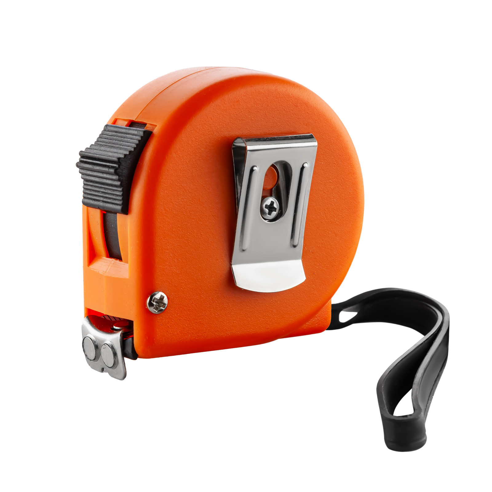 Idealny do pomiaru obiektów liniowych, zapewniający wysoką dokładność pomiaru i łatwość obsługi. Zalety: etui wykonane z wysokiej jakości tworzywa sztucznego o matowym wykończeniu zapewnia pewne trzymanie i ochronę przed uszkodzeniami; miarka posiada 2 specjalne stopery, które pozwalają zamocować płótno na żądanej długości; namagnesowany hak jest specjalnie wykonany jako ruchomy, co pozwala na prawidłowe pomiary powierzchni wewnętrznych i zewnętrznych, z uwzględnieniem ich grubości; matowe wykończenie blachy stalowej z dużą czcionką zapewnia komfort pracy; Dla wygody miarka wyposażona jest w pasek na nadgarstek i klips do paska.