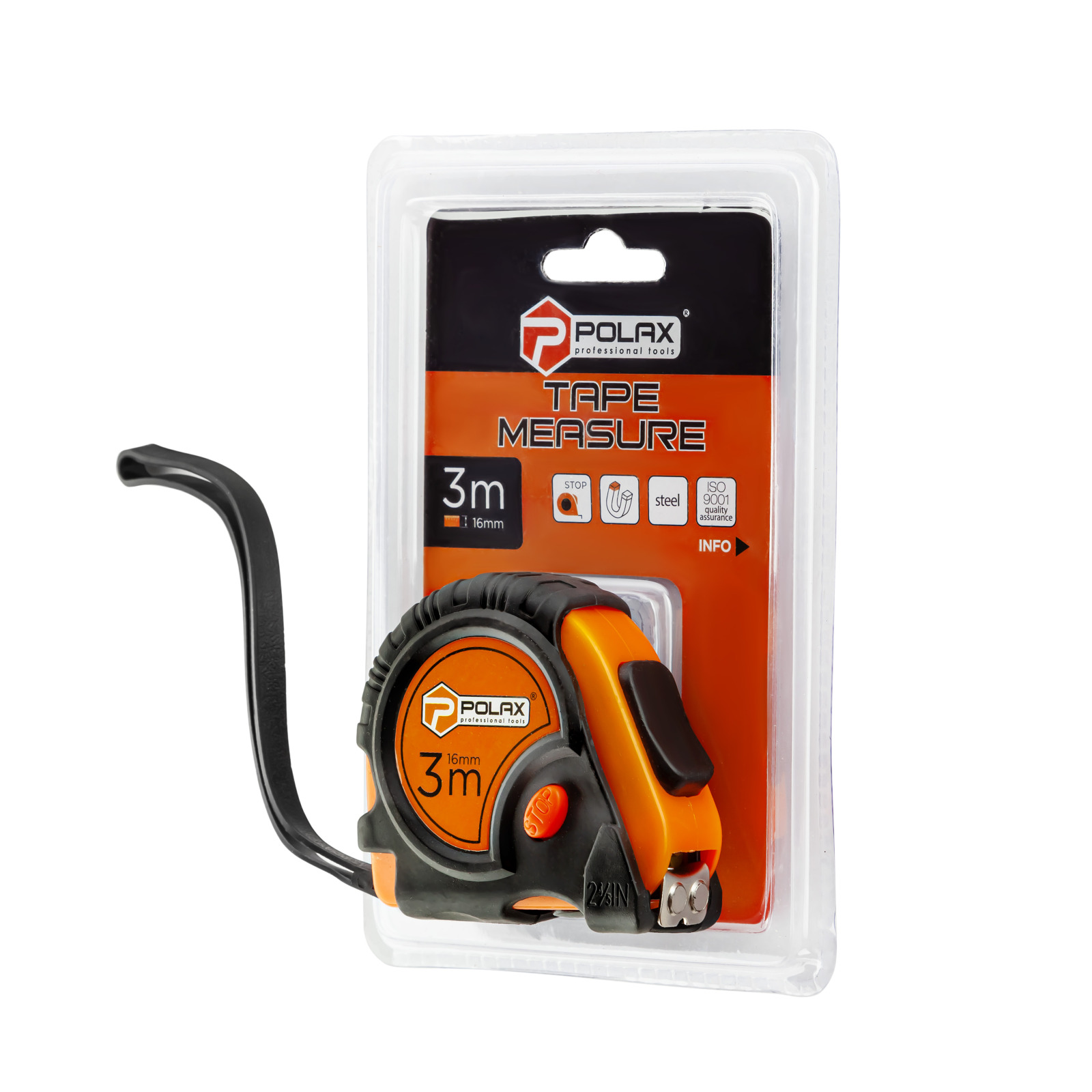 Taśma miernicza Polax to doskonałe narzędzie do wykonywania prac pomiarowych i znakujących na małej powierzchni. Idealnie nadaje się do stosowania w działalności zawodowej jak i na co dzień np. w domku letniskowym. Taśma miernicza wyposażona jest w ostrze o długości 3 metrów. Taśma posiada standardową skalę jednostek miary w centymetrach z wyraźnymi i precyzyjnymi podziałami. Tkanina jest bardzo trwała i odporna na zużycie. Taśma nie ulega odkształceniom i jest odporna na uszkodzenia mechaniczne. Okrągła plastikowa obudowa z podwyższoną krawędzią dobrze leży w dłoni mistrza. Korpus posiada uchwyt oraz zacisk, co sprawia, że korzystanie z miarki jest wygodne i łatwe.