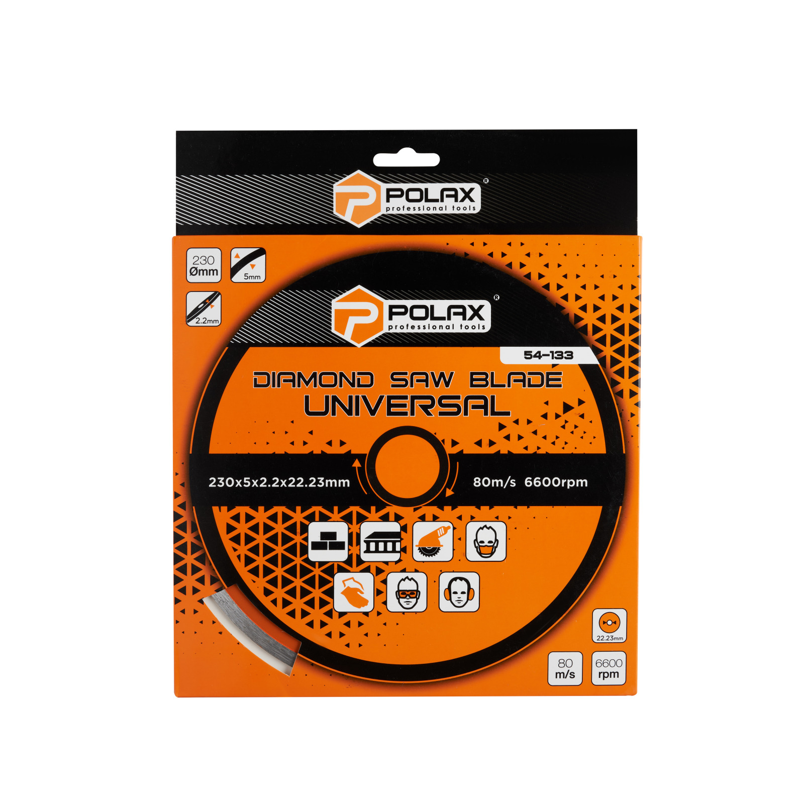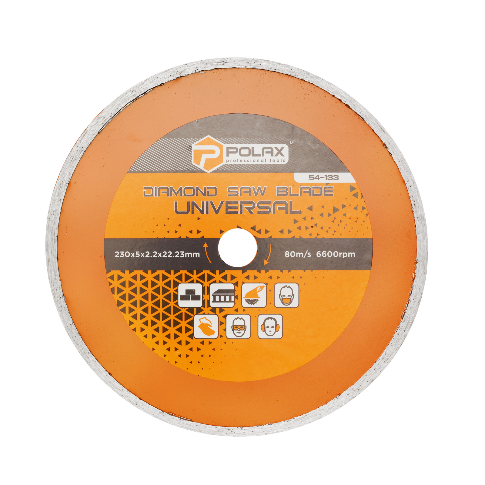 Tarcze diamentowe Polax Universal służą do cięcia wszelkiego rodzaju płytek i glazury. Posiada ciągłą krawędź, która zapobiega odpryskom i pęknięciom oraz pozwala na ultraprecyzyjne, delikatne cięcia. Średnica otworu montażowego wynosi 22,23 mm, wysokość warstwy diamentu 5 mm. Posiada unikalną funkcję samoostrzenia zapewniającą wysoką wydajność cięcia, w której metalowa podstawa krawędzi tnącej pomaga usunąć zużyte elementy diamentowe i uwolnić nowe elementy diamentowe. Tarcze Polax to wysokiej jakości tarcze, które znajdują szerokie zastosowanie zarówno przy naprawach domowych, jak i podczas wielkogabarytowych prac budowlanych. Do dysku dołączony jest pierścień adaptera.