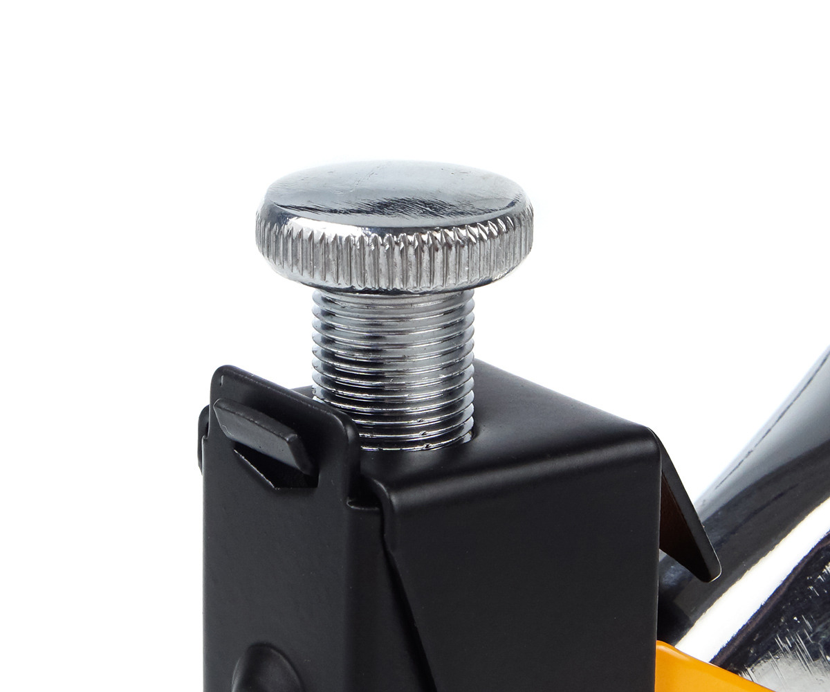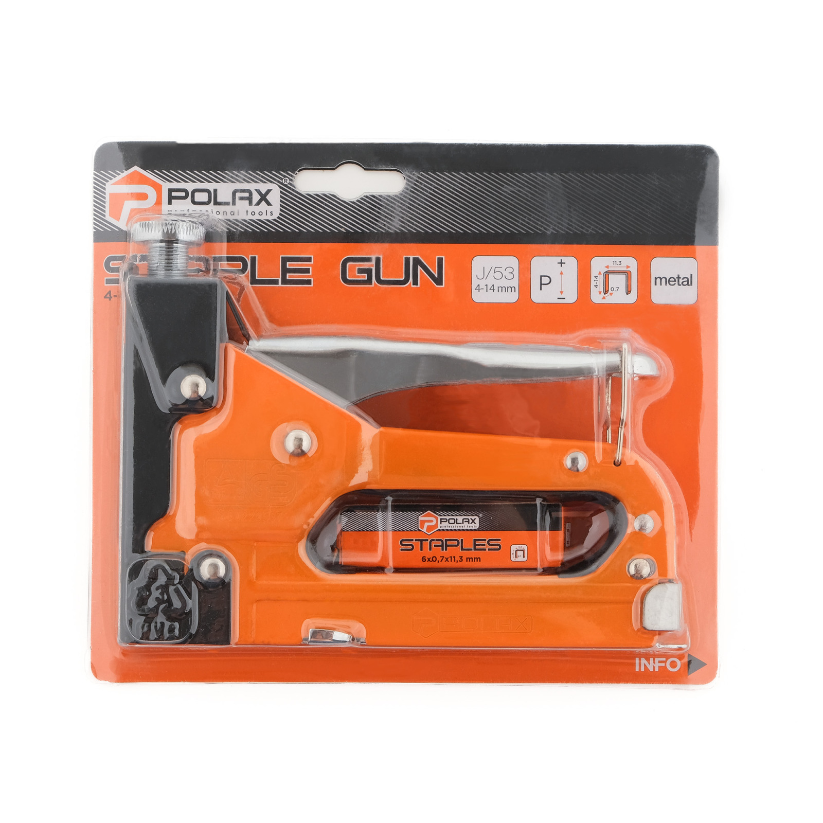Przeznaczony do mocowania materiału do powierzchni wykonanych z drewna, płyt pilśniowych, sklejki, płyt OSB, płyt gipsowo-kartonowych, tworzyw sztucznych za pomocą zszywek typu A/53. Zszywacz metalowy posiada metalową rączkę, a obecność wbudowanego rozszywacza pozwala zaoszczędzić czas i nerwy w przypadku konieczności wyjęcia zszywki. Narzędzie posiada również specjalną śrubę regulującą stopień docisku. Obracając go, można skonfigurować zszywacz do pracy z materiałem o różnej twardości (gęstości).