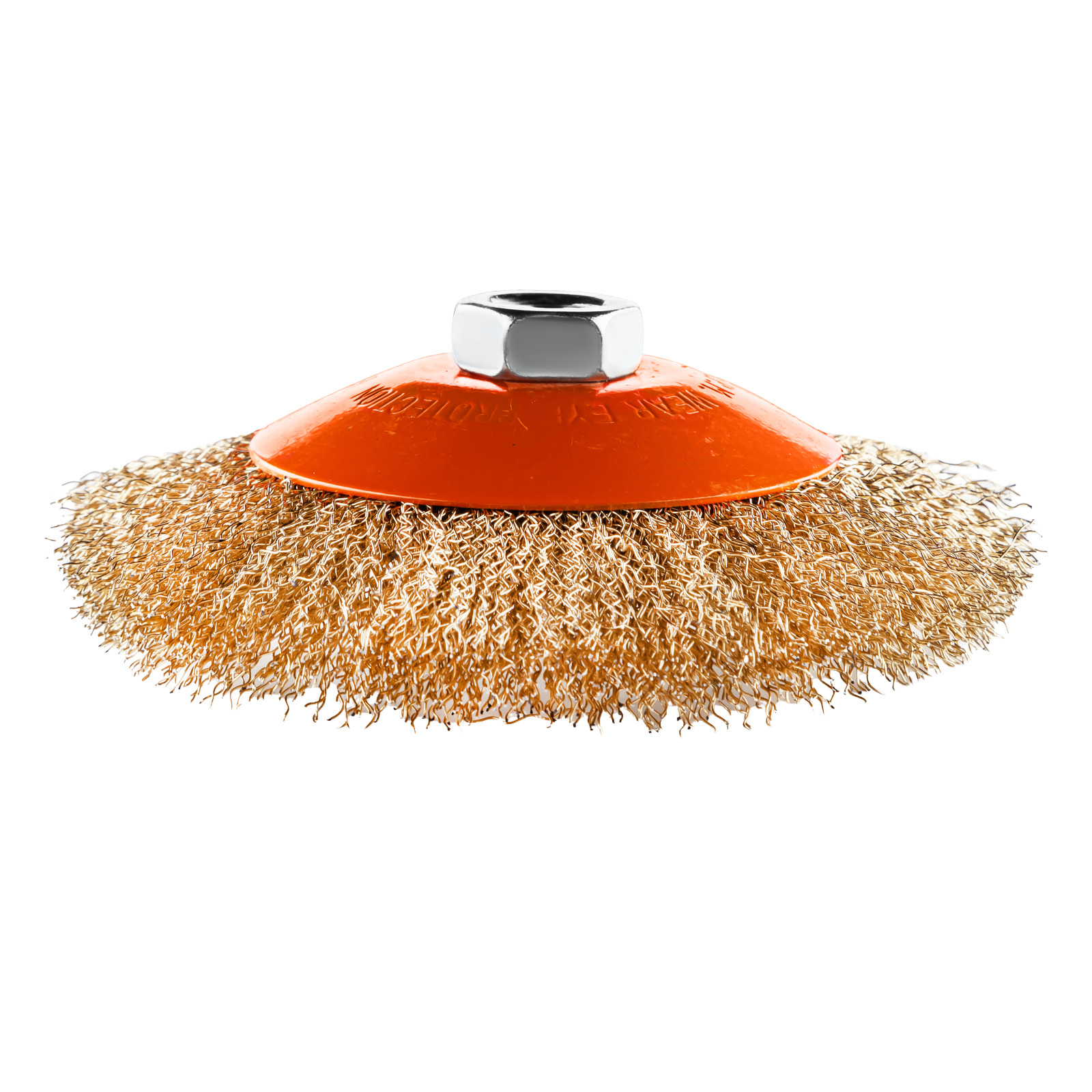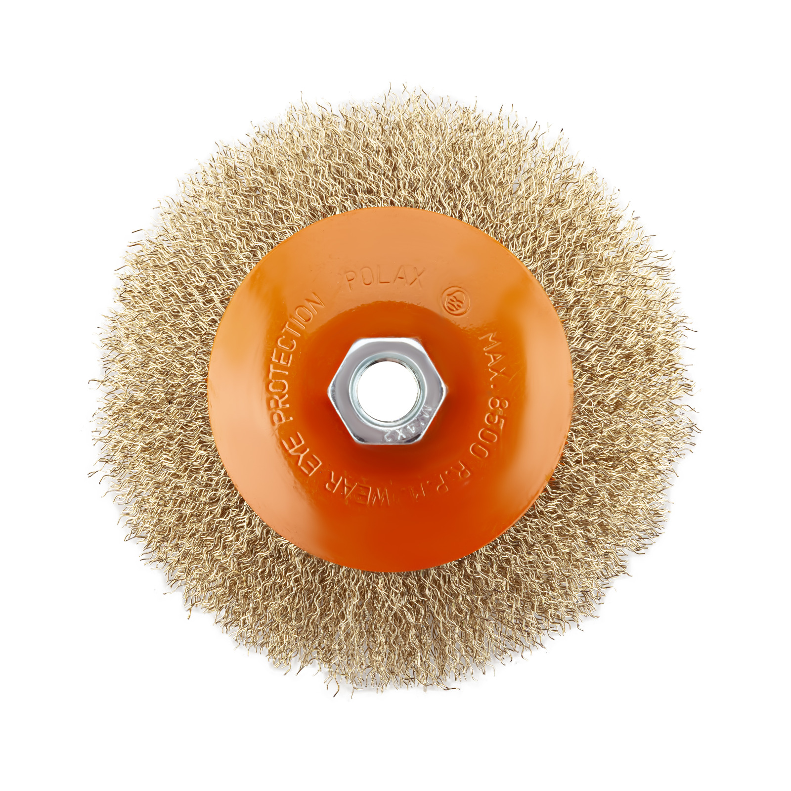 Stożkowa szczotka Polax stosowana jest w połączeniu ze szlifierką kątową (szlifierką) do szybkiego czyszczenia metalu i innych powierzchni oraz elementów ze starej farby, brudu, korozji i oznak naturalnego starzenia (patyny). Można go stosować zarówno w życiu codziennym, jak i w przemyśle do czyszczenia urządzeń i mechanizmów. Szczotka posiada stożkową stalową podstawę z rowkiem do gwintowanego połączenia ze szlifierką, a jej część robocza wykonana jest z bardzo wytrzymałego i odpornego na odkształcenia falistego drutu mosiężnego, który charakteryzuje się jednocześnie dużą sztywnością i umiarkowaną elastycznością. Produkt jest odporny na zużycie, trwały i łatwy w pielęgnacji.