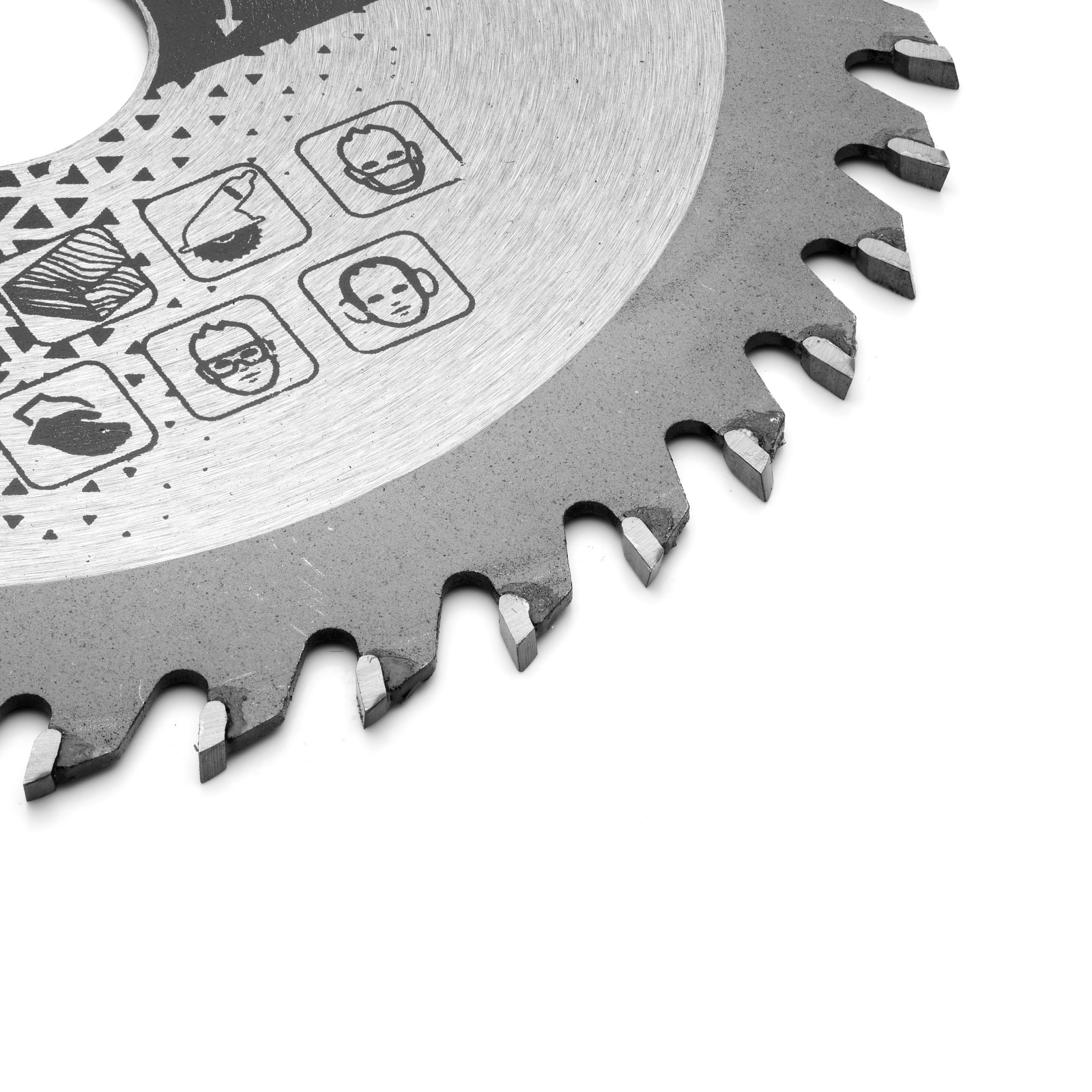 Charakteryzuje się dużą precyzją i dokładnością cięcia, nie pozostawia wiórów. Wycięcia wzdłuż konturu chronią dysk przed przegrzaniem podczas pracy. Każdy napęd przechodzi zautomatyzowany proces równoważenia. Specjalna proporcja węglika kobaltu i wolframu w lutowaniu węglikowym zapewnia doskonałą zdolność cięcia ostrza i jego produktywność. Nadaje się do cięcia sklejki, płyty wiórowej, płyty pilśniowej, drewna. W zestawie z pierścieniem adaptera