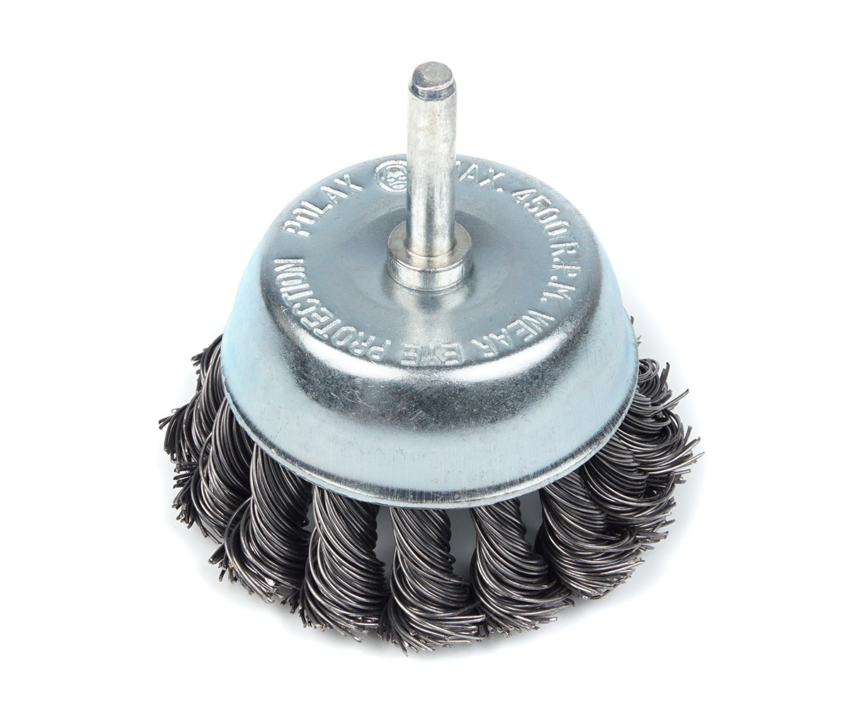 Metalowa szczotka końcowa Polax do wiązek wierteł ze skręconego plecionego drutu stalowego 1/4