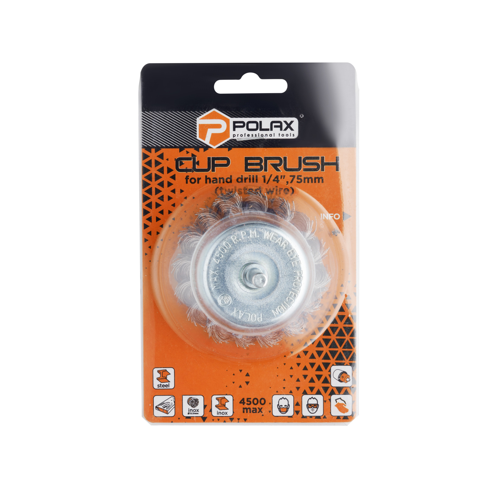 Szczotki końcowej w kształcie miseczki Polax można używać w połączeniu ze wszystkimi rodzajami wiertarek ręcznych i elektrycznych. Przeznaczony jest do szybkiego czyszczenia powierzchni i elementów metalowych oraz innych ze starych farb, lakierów, korozji, śladów naturalnego starzenia (patyna), osadów brudu, także w miejscach trudno dostępnych. Produkt może być stosowany zarówno w życiu codziennym jak i w różnych gałęziach przemysłu do czyszczenia urządzeń i mechanizmów. Szczotka posiada metalową podstawę z trzonkiem umożliwiającym podłączenie do wiertarki, a jej część robocza wykonana jest ze skręconego w wiązki drutu skręconego o dużej wytrzymałości i odporności na odkształcenia, który charakteryzuje się zarówno dużą sztywnością, jak i umiarkowaną elastycznością. Produkt jest odporny na zużycie, trwały i łatwy w utrzymaniu.