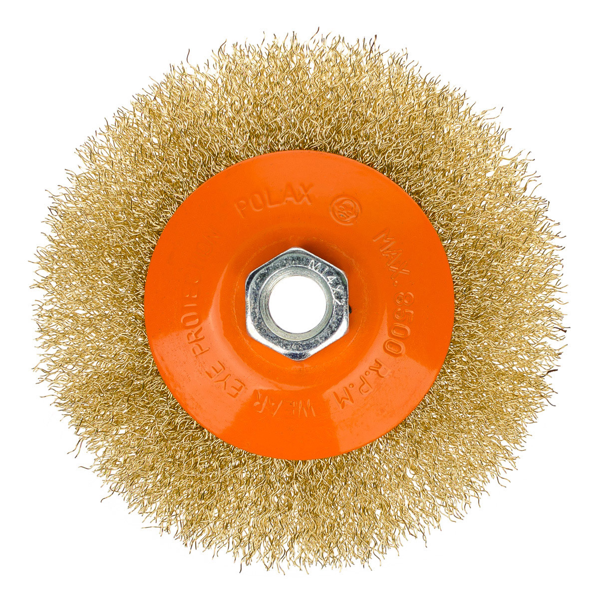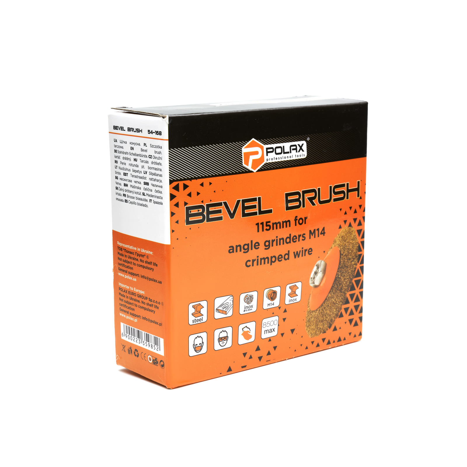 Stożkowa szczotka Polax stosowana jest w połączeniu ze szlifierką kątową (szlifierką) do szybkiego czyszczenia metalu i innych powierzchni oraz elementów ze starej farby, brudu, korozji i oznak naturalnego starzenia (patyny). Można go stosować zarówno w życiu codziennym, jak i w przemyśle do czyszczenia urządzeń i mechanizmów. Szczotka posiada stożkową stalową podstawę z rowkiem do gwintowanego połączenia ze szlifierką, a jej część robocza wykonana jest z bardzo wytrzymałego i odpornego na odkształcenia falistego drutu mosiężnego, który charakteryzuje się jednocześnie dużą sztywnością i umiarkowaną elastycznością. Produkt jest odporny na zużycie, trwały i łatwy w pielęgnacji.
