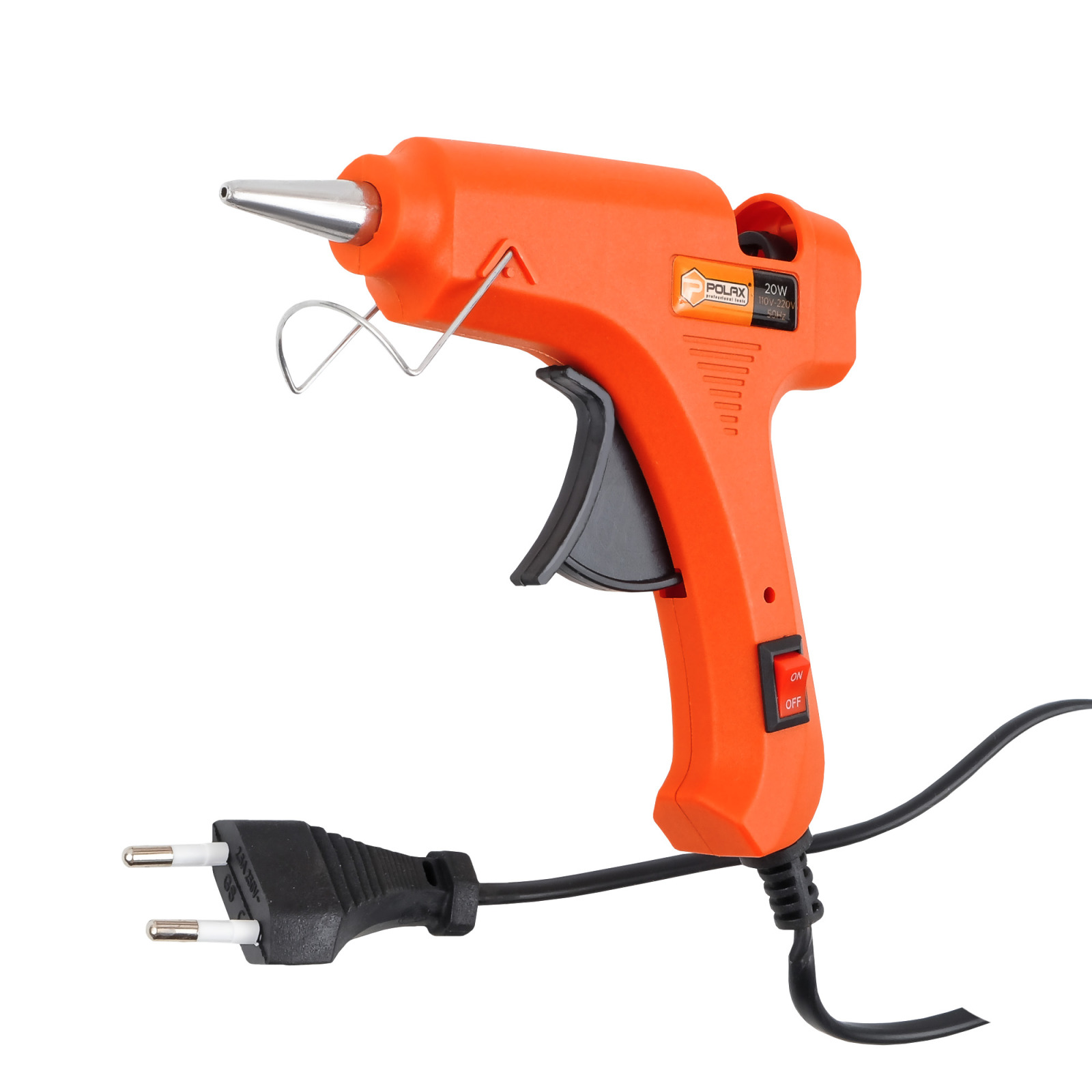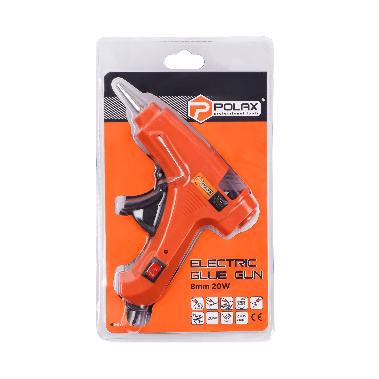 Pistolet do klejenia służy do klejenia różnych twardych materiałów - naturalnych lub syntetycznych (drewno, plastik, karton, szkło, ceramika, kamień, tkanina, korek, skóra, metal). Stosowany do uszczelniania szczelin i pęknięć konstrukcyjnych. Dysza z zaworem kulowym zapobiega późniejszemu uwalnianiu kropel kleju. Utrzymanie temperatury kleju na stałym poziomie zapobiega twardnieniu kleju. Druciana pałąk i powierzchnia uchwytu na rękojeści zapewniają doskonałą stabilność narzędzia. Nadaje się do stosowania z prętami o średnicy 8 mm. Wyposażony w włącznik/wyłącznik.