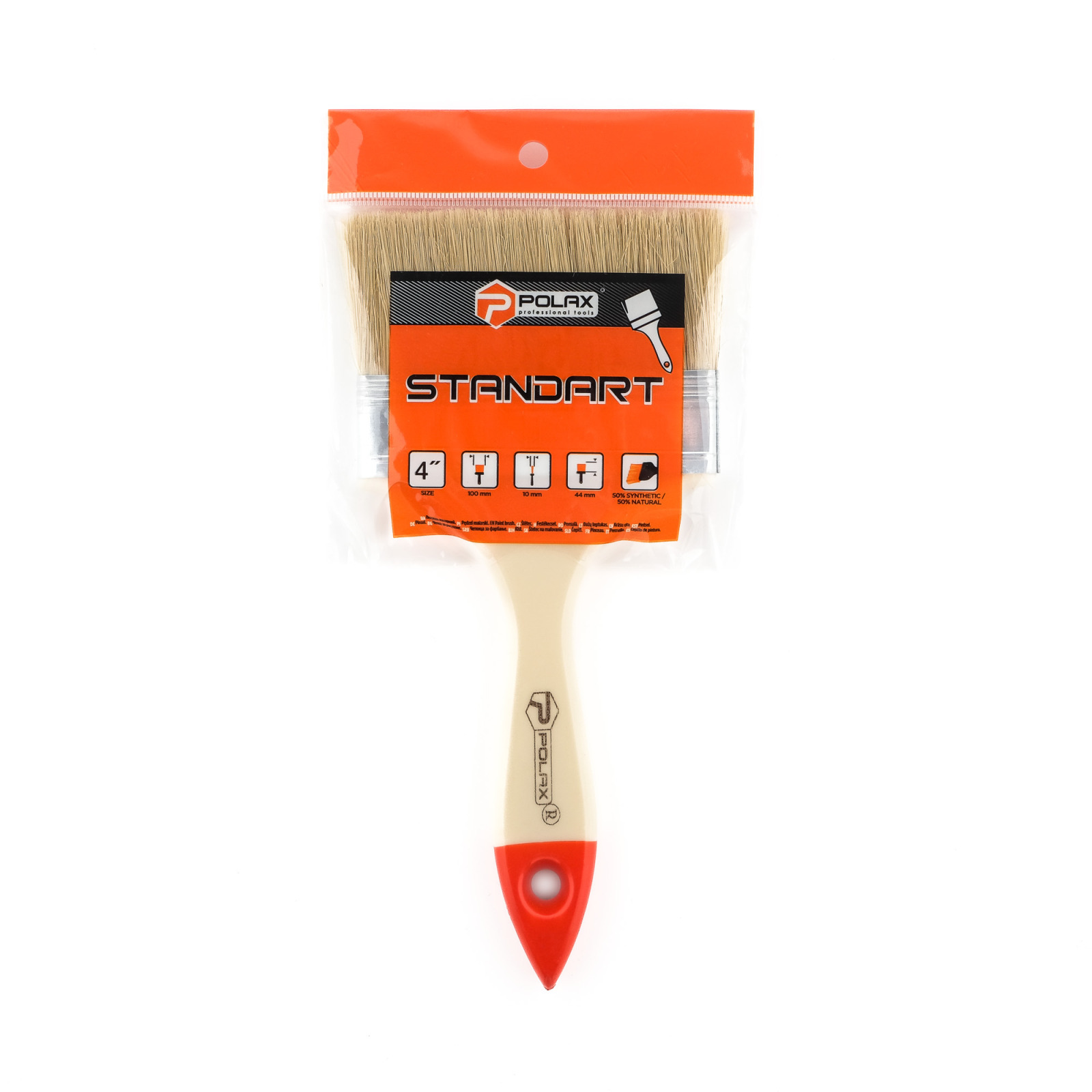Pędzel płaski Polax 4″ typu „Standard” włosie mieszane, rękojeść z tworzywa sztucznego (04-007)