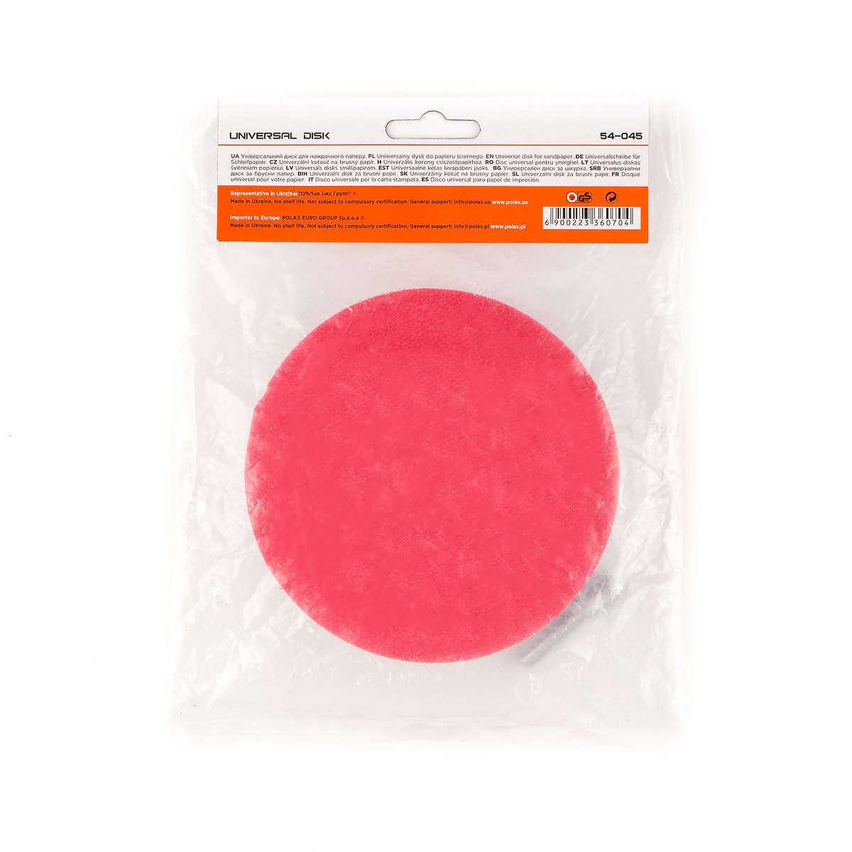 Uniwersalna platforma montażowa do ściernic Polax stosowana jest w szlifierkach mimośrodowych jako mocowanie tarczy do ściernicy. Urządzenie posiada gwintowany adapter, który pozwala na współpracę z wiertarką lub wkrętakiem. Z boku produktu znajduje się elastyczny i sprężysty amortyzator, który przy kontakcie łagodzi uderzenie platformy w przedmiot obrabiany. Powierzchnia typu Velcro bezpiecznie utrzymuje krążek szlifierski na podeszwie. Platforma jest lekka, mocna, trwała i łatwa w użyciu.