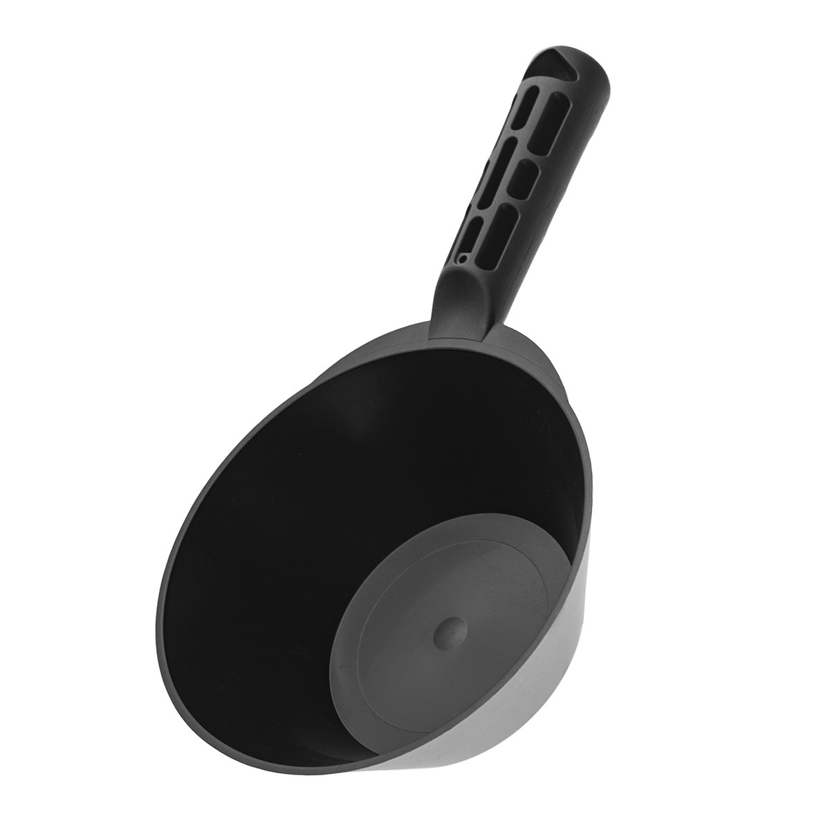 Łyżka ma wiele kluczowych cech, które czynią ją niezastąpionym pomocnikiem w budowie i naprawie. Dzięki płaskiemu dnie stabilnie stoi na każdej płaskiej powierzchni, co ułatwia pracę z materiałem i zmniejsza ryzyko rozsypania się mieszanki. Jego pojemność wynosi 0,8 litra, co idealnie sprawdza się przy pracach niewymagających dużej ilości mieszanki na raz, jak np. szpachlowanie czy uszczelnianie fug.