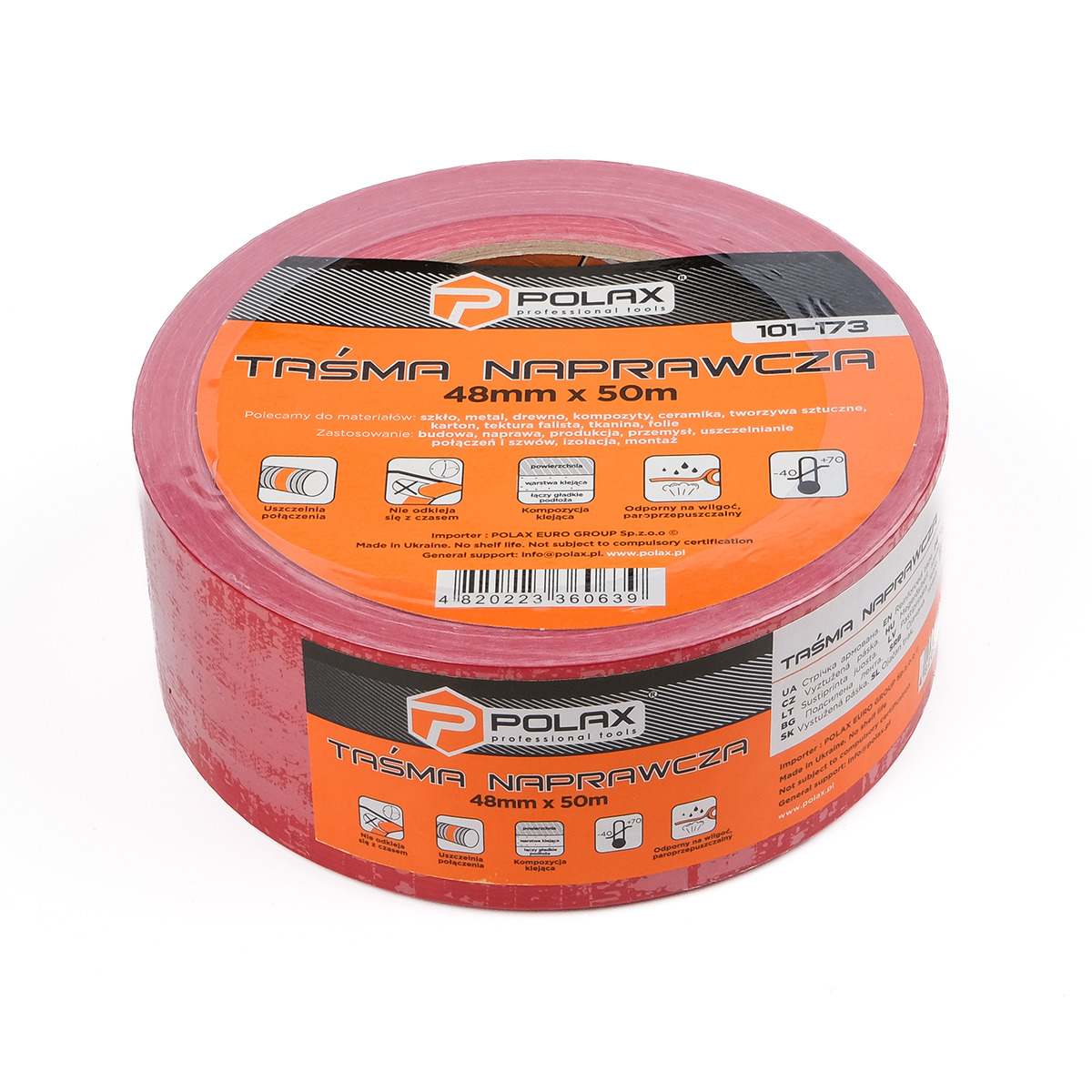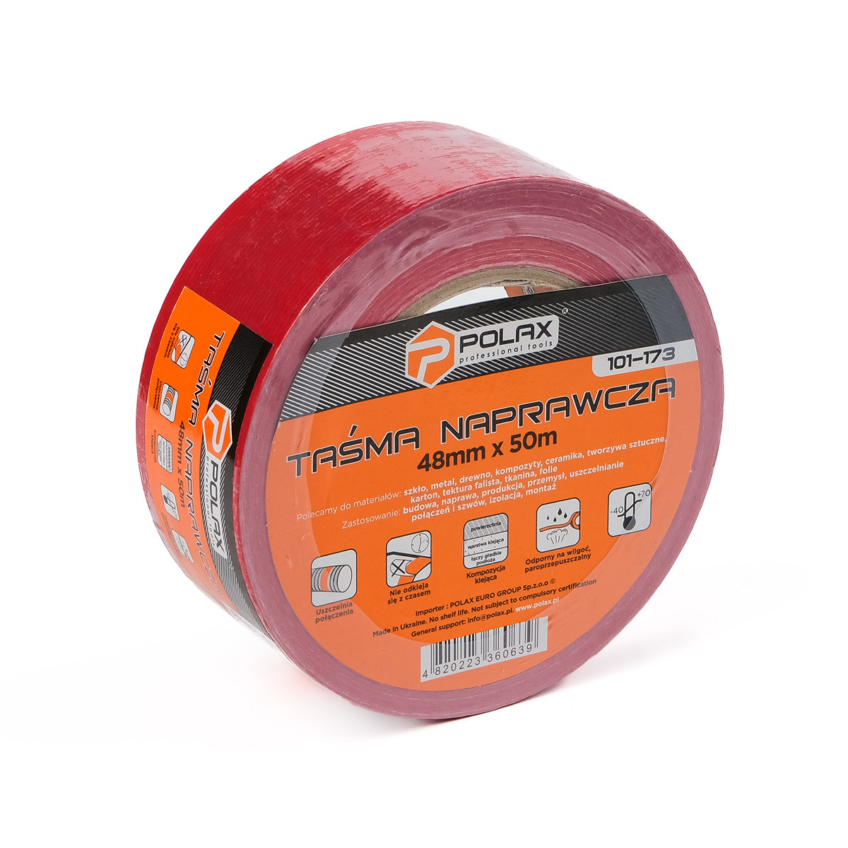 Wytrzymałość produktu zapewniają włókna tkaniny, które jednocześnie nadają taśmie elastyczność. Pomimo skomplikowanej technologii produkcji taśma jest dość cienka, dzięki czemu nadaje się do zaklejania nawet małych przedmiotów i powierzchni. Taśma klejąca wzmocniona Polax czerwona 50 mm x 50 m (101-173)