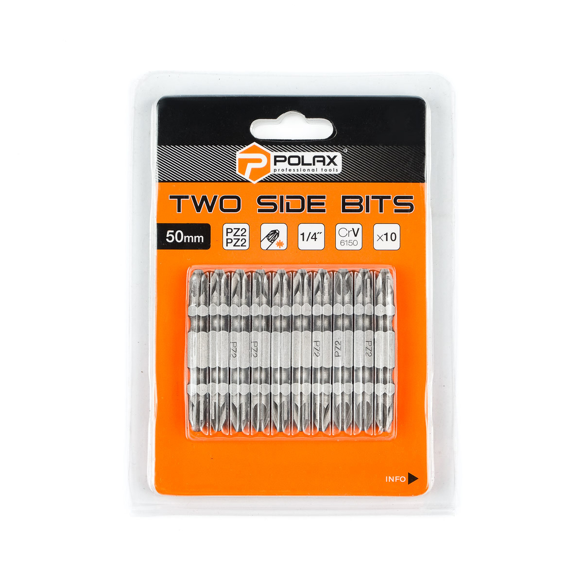 Bit stalowy dwustronny Polax 50 mm PZ2-PZ2 1/4", 10 szt. (51-088) to niezawodne narzędzie, które sprawi, że Twoje zadania będą jeszcze wygodniejsze i wydajniejsze. Kluczową cechą tego bitu jest zastosowanie wysokiej wysokiej jakości stali CrV, która gwarantuje jego wytrzymałość i długą żywotność. Długość kija wynosi 50 mm, co zapewnia łatwość użytkowania. Jednak najbardziej niesamowitą cechą tego kija jest jego dwustronna konstrukcja.