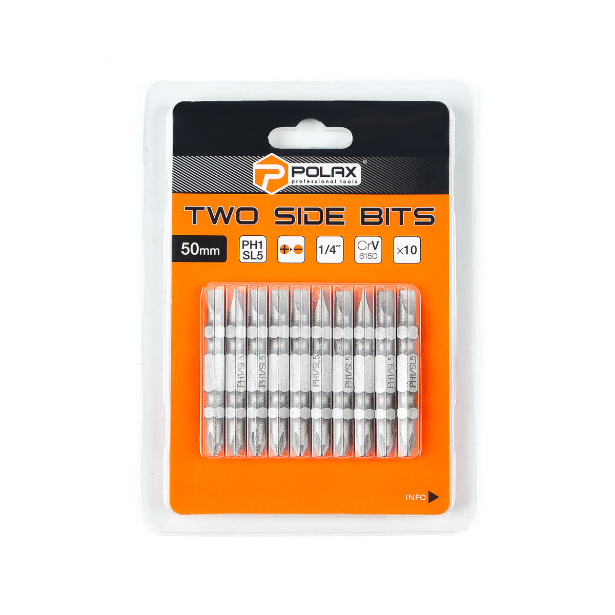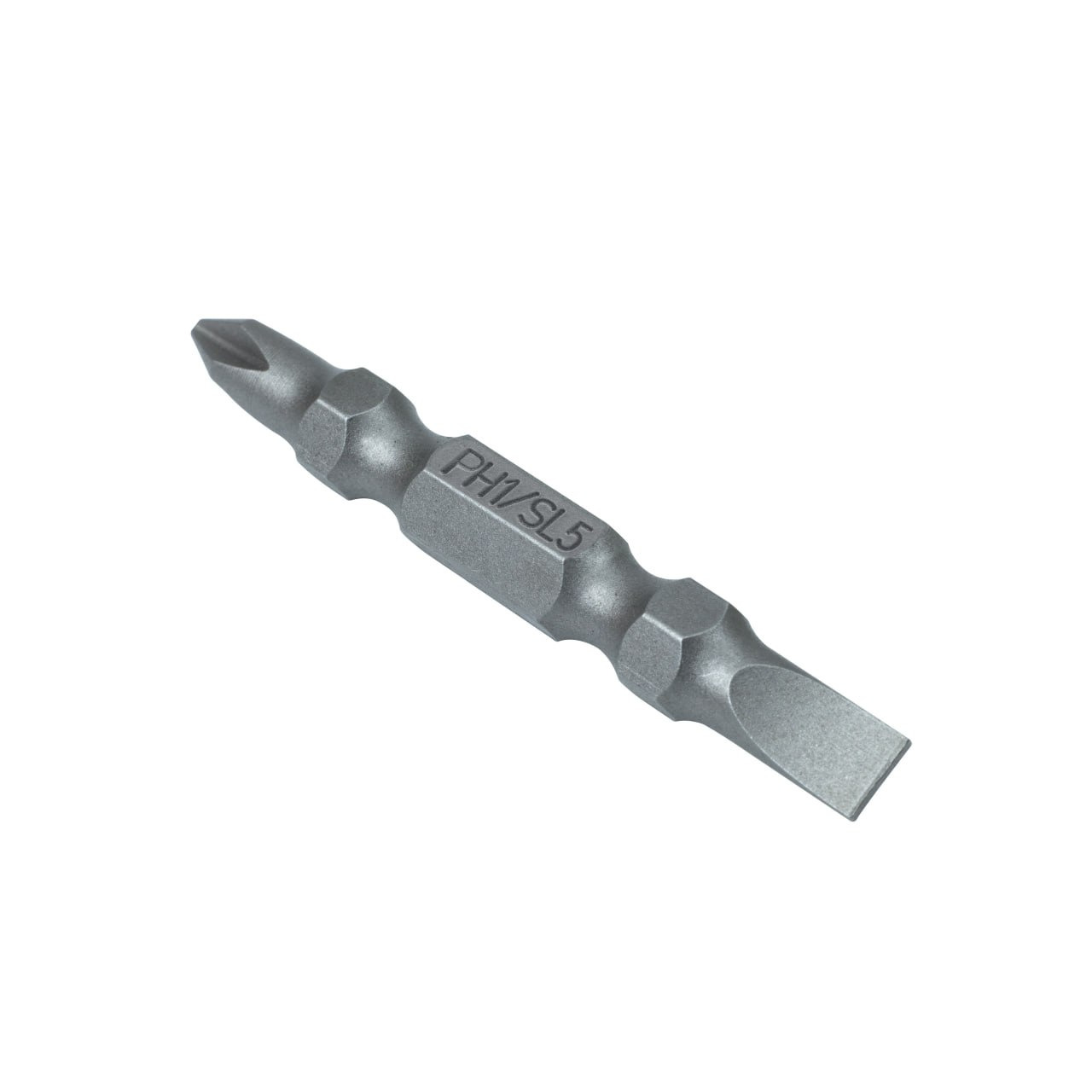 Bit stalowy dwustronny Polax 50 mm PH1-SL5 1/4", 10 szt. (51-085) to niezawodne narzędzie, które sprawi, że Twoje zadania będą jeszcze wygodniejsze i wydajniejsze. Kluczową cechą tego bitu jest zastosowanie wysokiej wysokiej jakości stali CrV, która gwarantuje jego wytrzymałość i długą żywotność. Długość kija wynosi 50 mm, co sprawia, że jest łatwy w użyciu. Jednak najbardziej niesamowitą cechą tego kija jest jego dwustronna konstrukcja. Wyposażony jest w gniazdo PH1, a z drugiej - SL5, co czyni go uniwersalnym rozwiązaniem do pracy z różnego rodzaju wkrętami i wkrętami. Nie będziesz już tracić czasu na szukanie odpowiedniego bitu - po prostu odwróć go!