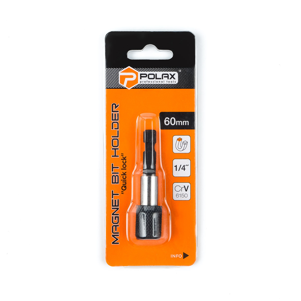 Magnetyczny uchwyt na bity Polax Quck Lock 1/4" 60mm (51-093) to innowacyjne rozwiązanie zaprojektowane z myślą o wygodzie i efektywności Twojej pracy. Główne cechy tego produktu to: Uchwyt magnetyczny wykonany jest z wytrzymałej i niezawodnej stali CrV , który zapewnia wysoką wytrzymałość i odporność na zużycie. Ten magnetyczny uchwyt wyposażony jest w zaawansowaną technologię Quick Lock, która pozwala na błyskawiczne i bezpieczne blokowanie nasadek i bitów. Dzięki temu jest to znacznie łatwiejsze i szybsze. Twoje procesy pracy.