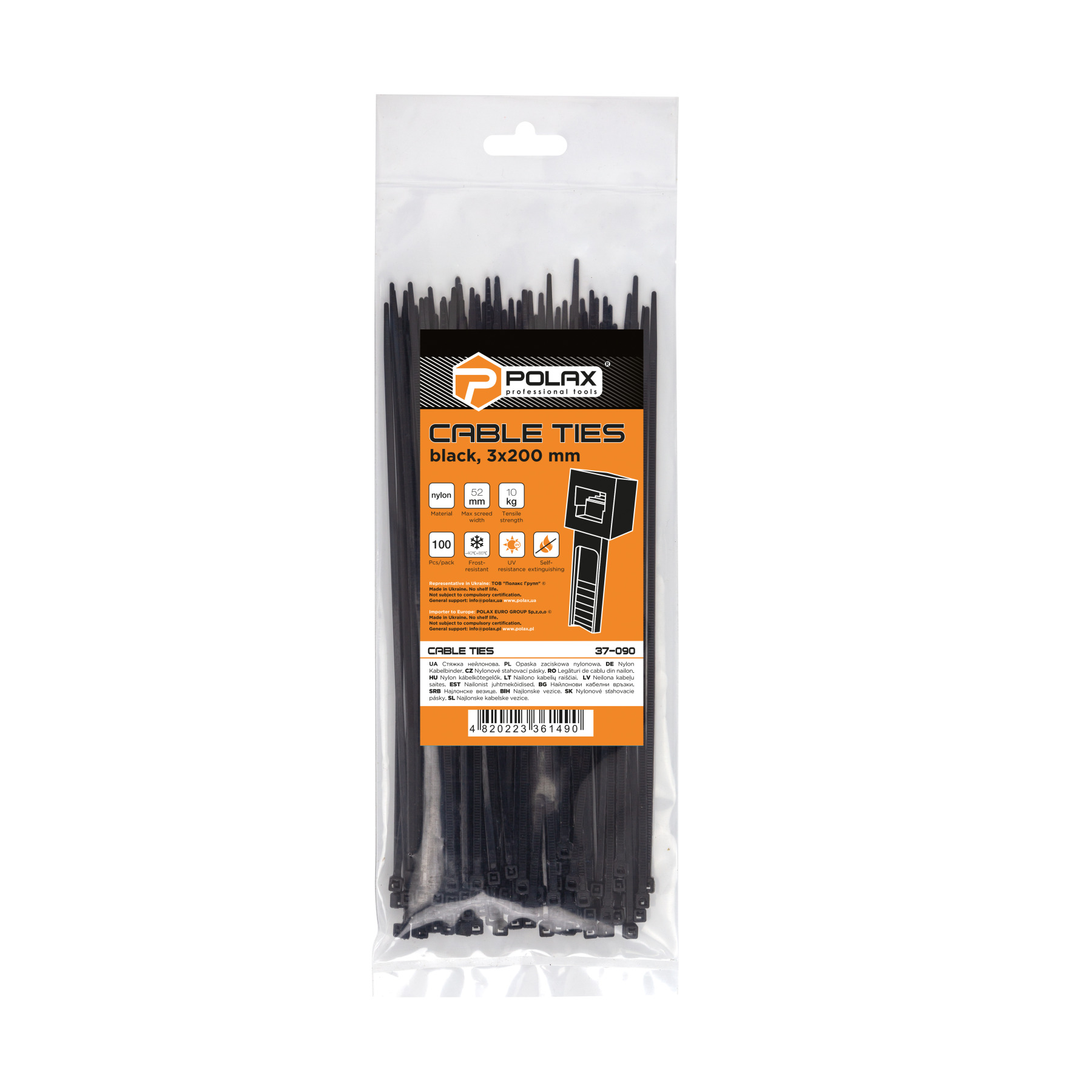 Zacisk plastikowy (opaska) Polax nylon 3 x 200 mm, czarny 100 szt. (37-090) - niezawodne i uniwersalne rozwiązanie umożliwiające skuteczne mocowanie i porządkowanie różnorodnych elementów. Ten zestaw 100 czarnych nylonowych zacisków o wymiarach 3 x 200 mm zapewnia mocne i niezawodne połączenie do różnych zastosowań. Charakteryzują się optymalnymi wymiarami: 3 x 200 mm, co czyni je idealnymi do mocowania kabli, rur, przewodów i innych przedmiotów o różnych rozmiarach. Materiał nylonowy zapewnia wytrzymałość i elastyczność, a także odporność na wilgoć i czynniki zewnętrzne. Obejmy nylonowe Polax przeznaczone są do stosowania w instalacjach elektrycznych, organizowaniu systemów kablowych, a także do zabezpieczania rur i innych elementów w domu, biurze czy fabryce. Dostępne w opakowaniach po 100 sztuk, stanowią wygodne i ekonomiczne rozwiązanie dla różnorodnych projektów, które wymagają szybkiego, mocnego i schludnego mocowania.