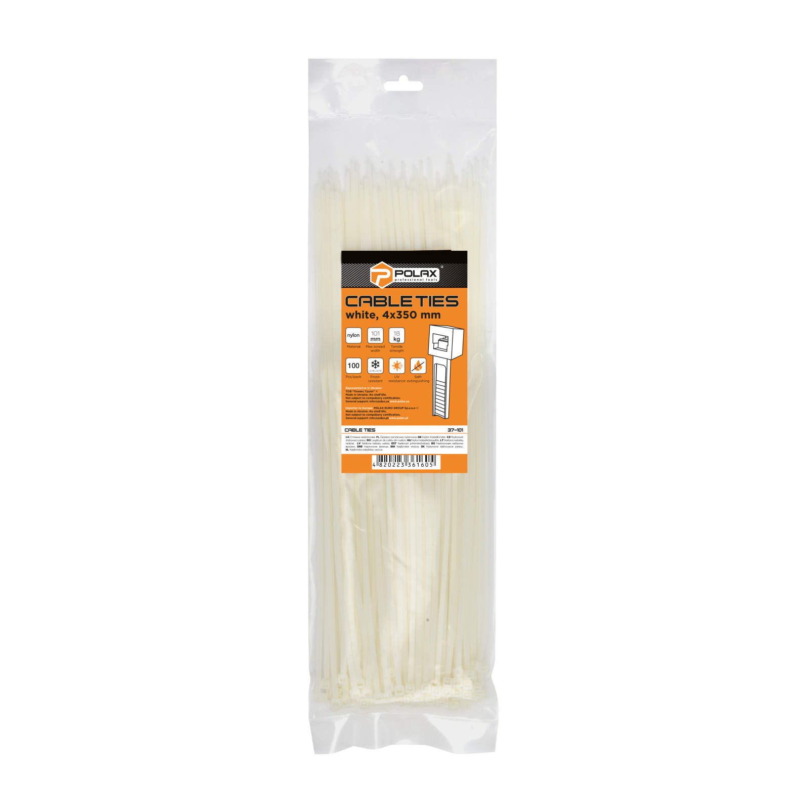 Zacisk plastikowy (opaska) Polax nylon 4 x 350 mm, biały 100 szt. (37-101) - niezawodne i wszechstronne rozwiązanie umożliwiające skuteczne mocowanie i porządkowanie różnych elementów. Ten zestaw 100 białych nylonowych zacisków 4 x 350 mm zapewnia mocne i niezawodne połączenie do różnych zastosowań. Charakteryzują się optymalnymi wymiarami: 4 x 350 mm, co czyni je idealnymi do mocowania kabli, rur, przewodów i innych przedmiotów o różnych rozmiarach. Materiał nylonowy zapewnia wytrzymałość i elastyczność, a także odporność na wilgoć i czynniki zewnętrzne. Obejmy nylonowe Polax przeznaczone są do stosowania w instalacjach elektrycznych, organizowaniu systemów kablowych, a także do zabezpieczania rur i innych elementów w domu, biurze lub fabryce. Dostępne w opakowaniach po 100 sztuk, stanowią wygodne i ekonomiczne rozwiązanie dla różnorodnych projektów, które wymagają szybkiego, mocnego i schludnego mocowania.