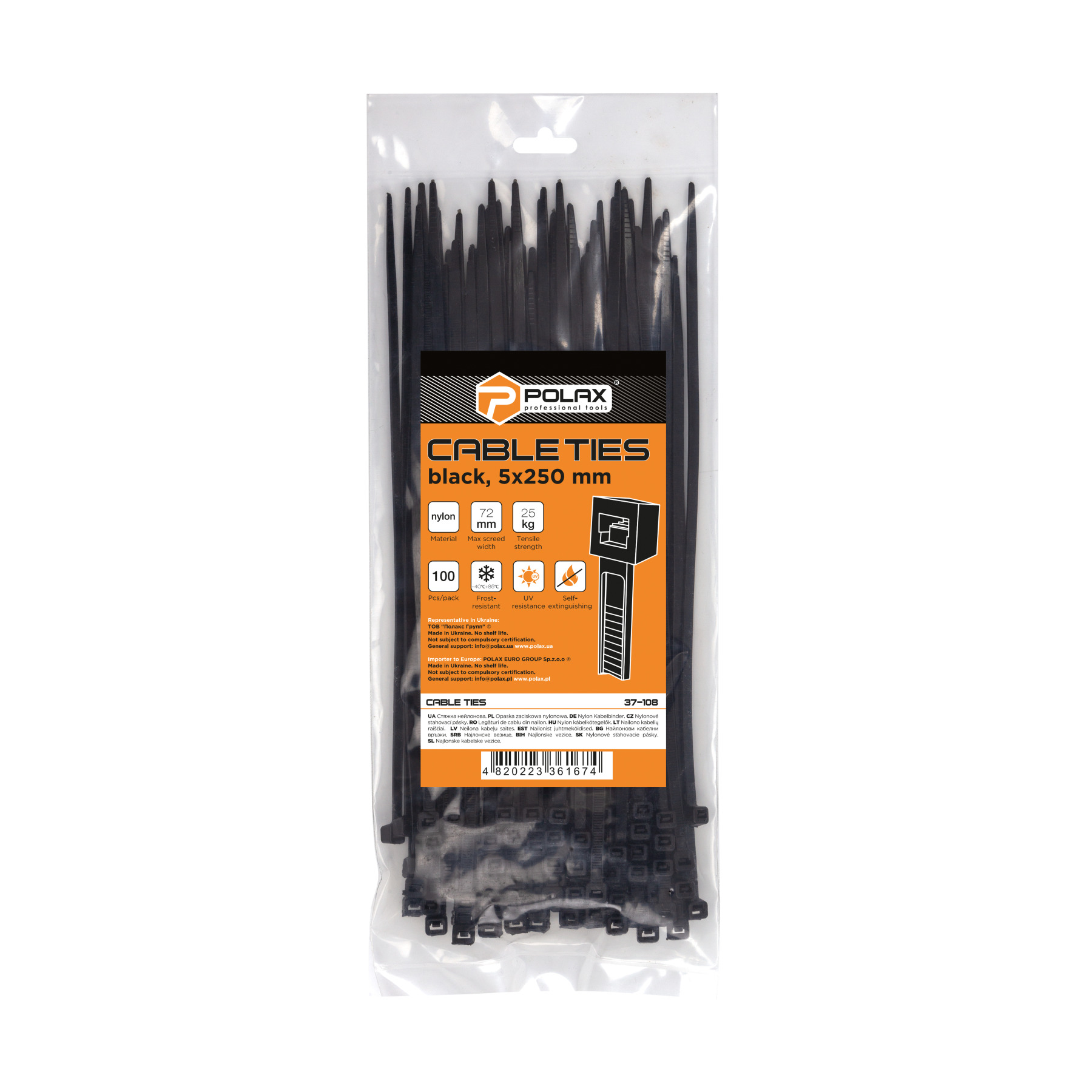 Zacisk plastikowy (opaska) Polax nylon 5 x 250 mm, czarny 100 szt. (37-108) - niezawodne i wszechstronne rozwiązanie umożliwiające skuteczne mocowanie i porządkowanie różnych elementów. Ten zestaw 100 czarnych nylonowych zacisków o wymiarach 5 x 250 mm zapewnia mocne i niezawodne połączenie do różnych zastosowań. Charakteryzują się optymalnymi wymiarami: 5 x 250 mm, co czyni je idealnymi do mocowania kabli, rur, przewodów i innych przedmiotów o różnych rozmiarach. Materiał nylonowy zapewnia wytrzymałość i elastyczność, a także odporność na wilgoć i czynniki zewnętrzne. Obejmy nylonowe Polax przeznaczone są do stosowania w instalacjach elektrycznych, organizowaniu systemów kablowych, a także do zabezpieczania rur i innych elementów w domu, biurze lub fabryce. Dostępne w opakowaniach po 100 sztuk, stanowią wygodne i ekonomiczne rozwiązanie dla różnorodnych projektów, które wymagają szybkiego, mocnego i schludnego mocowania.