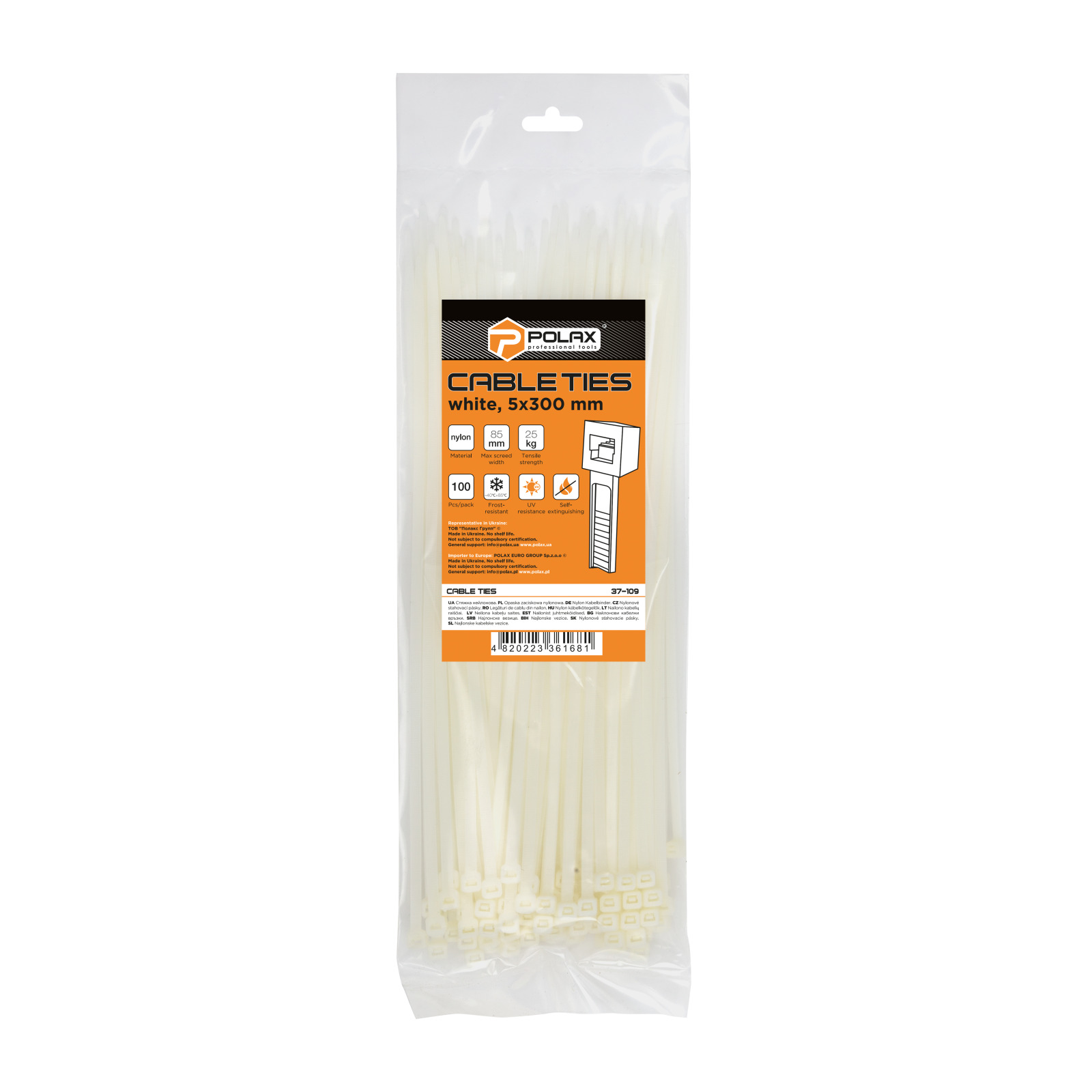 Zacisk plastikowy (opaska) Polax nylon 5 x 300 mm, biały 100 szt. (37-109) - niezawodne i uniwersalne rozwiązanie umożliwiające skuteczne mocowanie i porządkowanie różnorodnych elementów. Ten zestaw 100 białych nylonowych zacisków o wymiarach 5 x 300 mm zapewnia mocne i niezawodne połączenie do różnych zastosowań. Charakteryzują się optymalnymi wymiarami: 5 x 300 mm, co czyni je idealnymi do mocowania kabli, rur, przewodów i innych przedmiotów o różnych rozmiarach. Materiał nylonowy zapewnia wytrzymałość i elastyczność, a także odporność na wilgoć i czynniki zewnętrzne. Obejmy nylonowe Polax przeznaczone są do stosowania w instalacjach elektrycznych, organizowaniu systemów kablowych, a także do zabezpieczania rur i innych elementów w domu, biurze lub fabryce. Dostępne w opakowaniach po 100 sztuk, stanowią wygodne i ekonomiczne rozwiązanie dla różnorodnych projektów, które wymagają szybkiego, mocnego i schludnego mocowania.