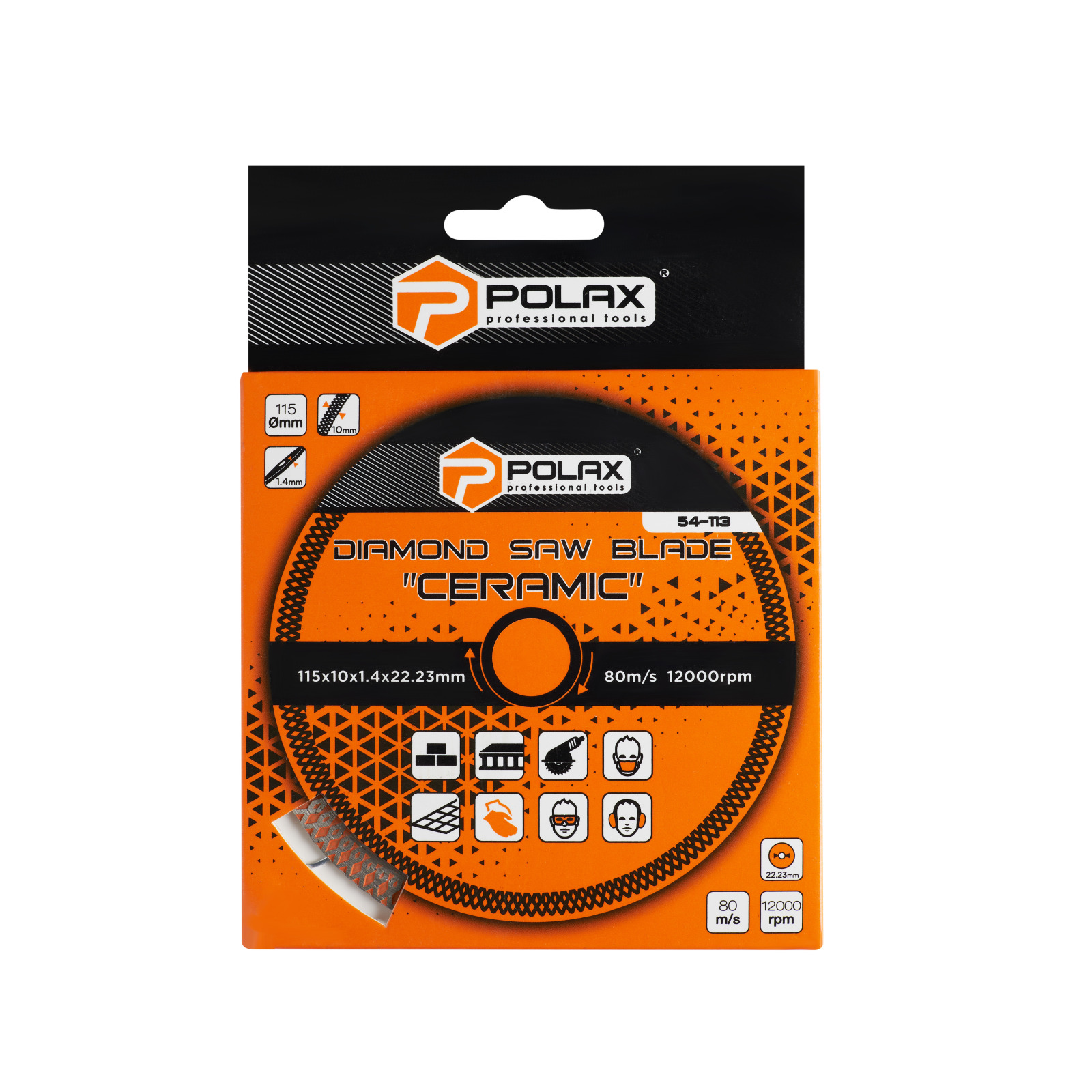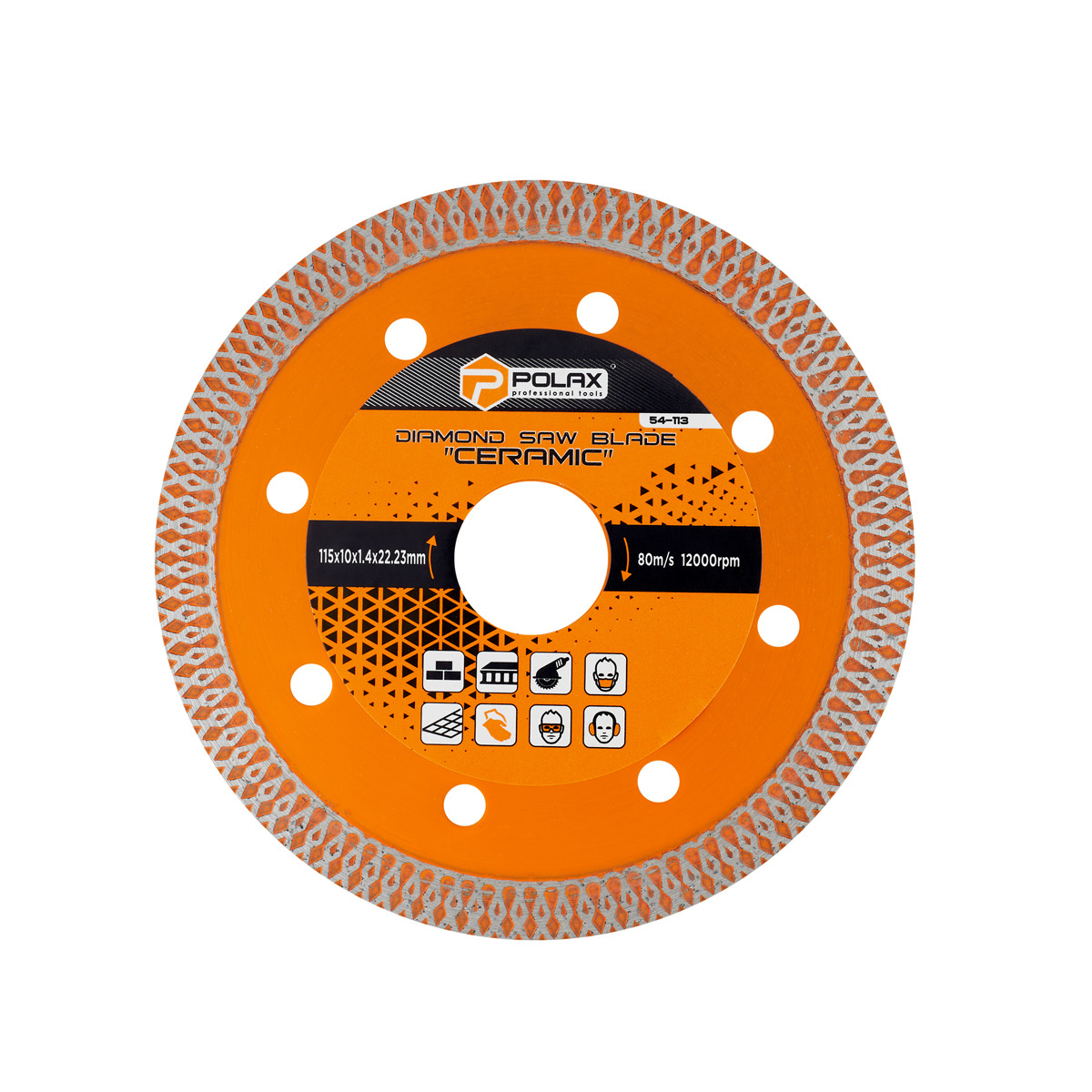 Tarcze diamentowe Polax Ceramic dzięki zmniejszonej grubości (najcieńsze tarcze diamentowe w ofercie Polax) pozwalają ciąć szybciej i dokładniej, unikając odprysków i przy mniejszym obciążeniu szlifierki. Zapewniają precyzyjne i cienkie cięcia, a także szlifowanie krawędzi płytek. Tarcze przeznaczone są do cięcia na sucho i nie wymagają wymuszonego chłodzenia. Zoptymalizowany do cięcia gresu porcelanowego. Nadaje się również do cięcia płytek ceramicznych, płytek porcelanowych, marmuru, cegły, betonu, płytek, płyt chodnikowych i innych twardych materiałów. Wysoka koncentracja drobnych diamentów na krawędzi tnącej w kształcie litery X , a także minimalna możliwa grubość ściernicy, zapewnia minimalne tarcie w ciętym materiale, dużą prędkość cięcia i zwiększoną czystość krawędzi.