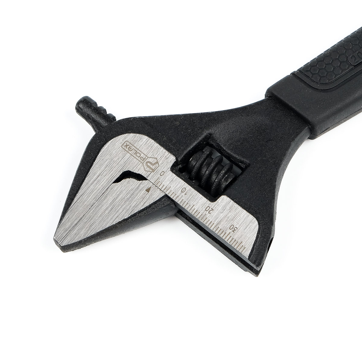 Stylowa czarna konstrukcja klucza Polax nie tylko nadaje mu estetyczny wygląd, ale jest także symbolem niezawodności i wysokiej jakości. Gumowana rękojeść zapewnia wygodny chwyt, zapobiegając poślizgowi i zapewniając stabilność podczas pracy. Cienkie szczęki klucza nastawnego Polax umożliwiają wykonywanie delikatnych operacji z maksymalną precyzją i czułością. Długość klucza wynosi 200 mm, a zakres rozwarcia szczęk wynosi od 0 do 38 mm, co czyni go uniwersalnym narzędziem do pracy z różnymi materiałami i częściami.