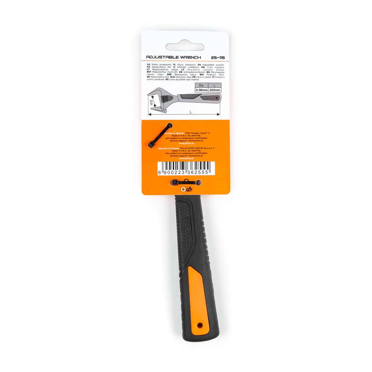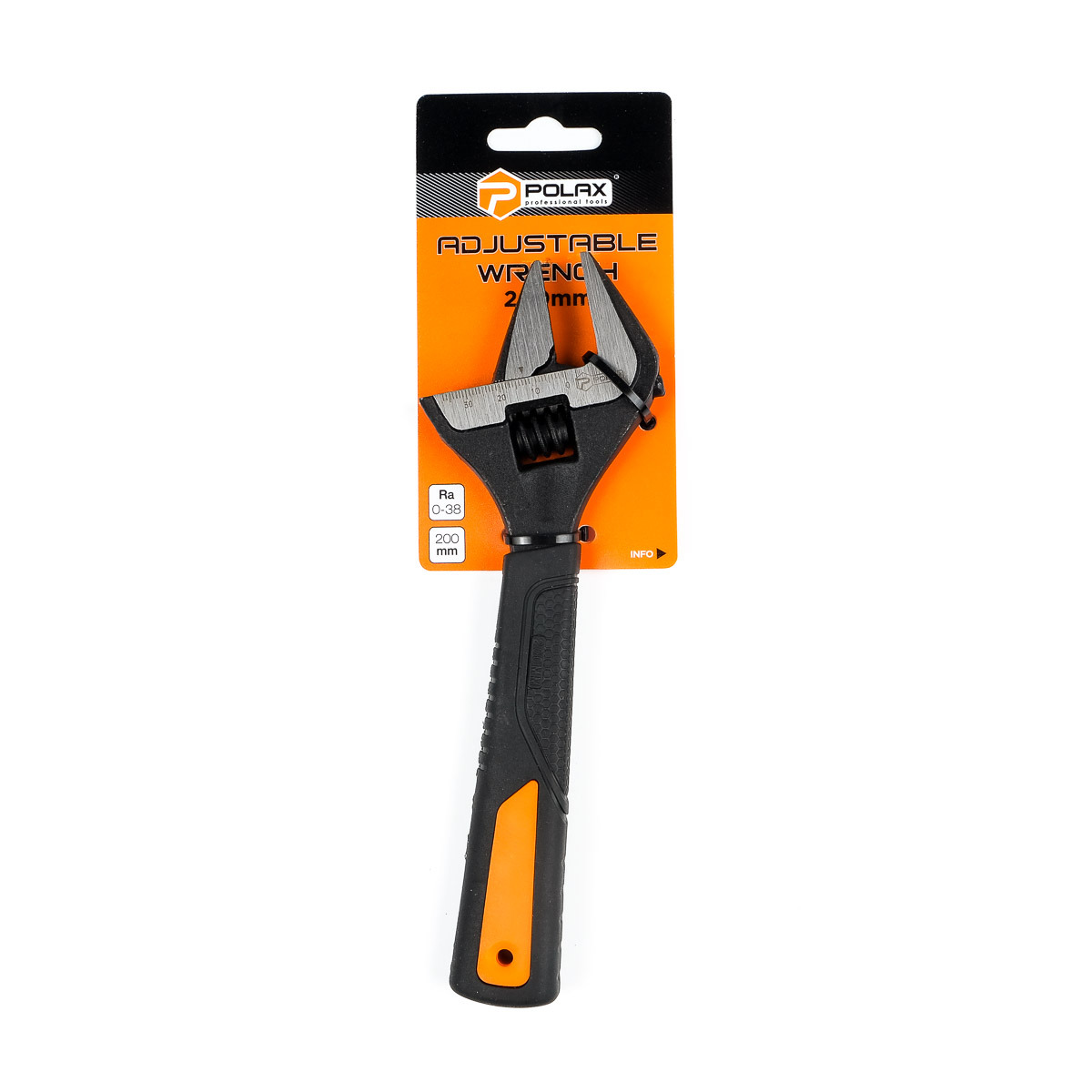 Klucz nastawny Polax z cienkimi szczękami 200 mm (25-115). Klucz ten jest idealnym narzędziem do różnorodnych zadań, zarówno przy profesjonalnych naprawach, jak i przy projektach domowych.