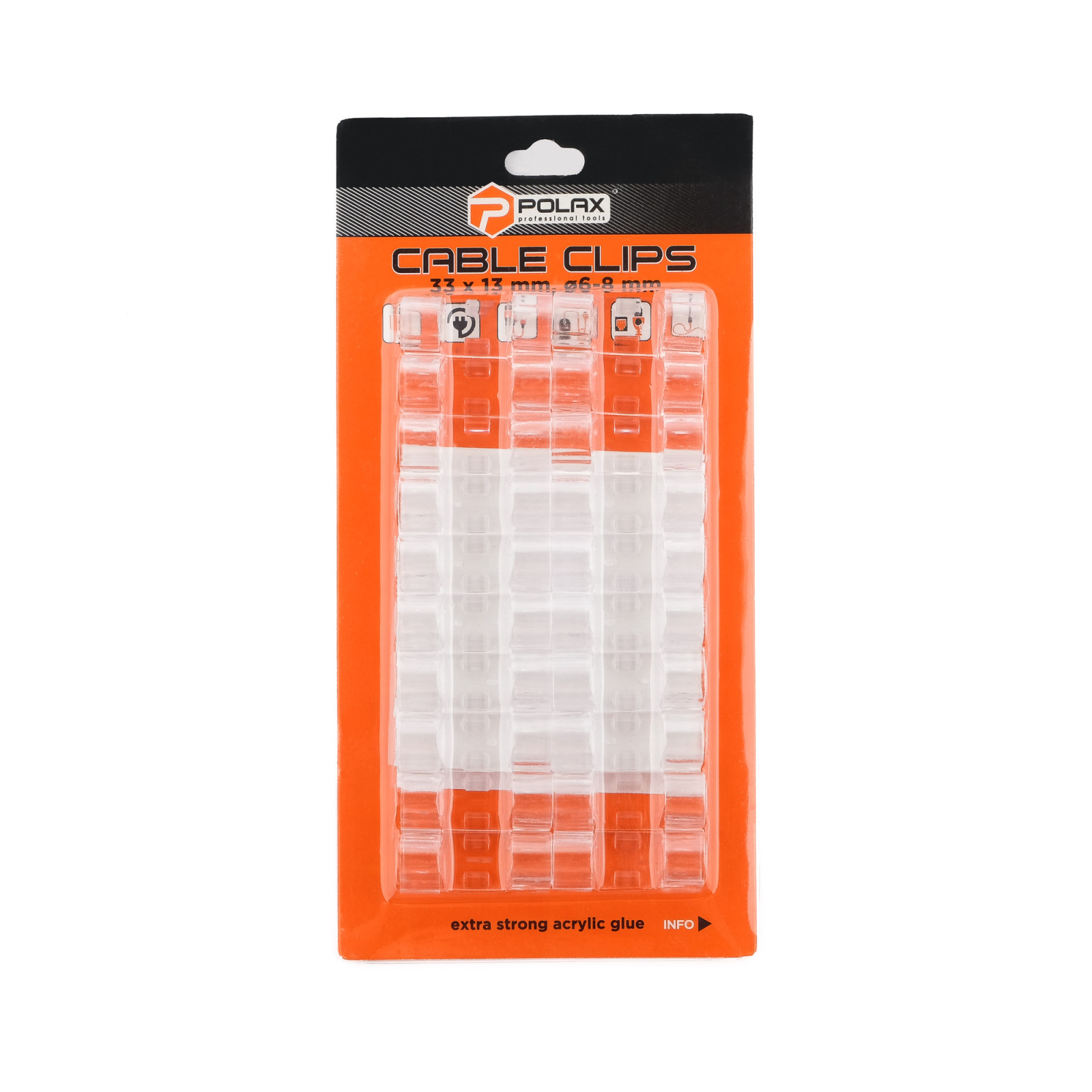Każdy klips ma 33 mm długości i 13 mm szerokości, dzięki czemu są dyskretne i dyskretne na każdej powierzchni. Dzięki klipsom do kabli Polax Twoje kable będą zawsze schludnie zorganizowane i na swoim miejscu. Zamień chaos w porządek z Polaxem!