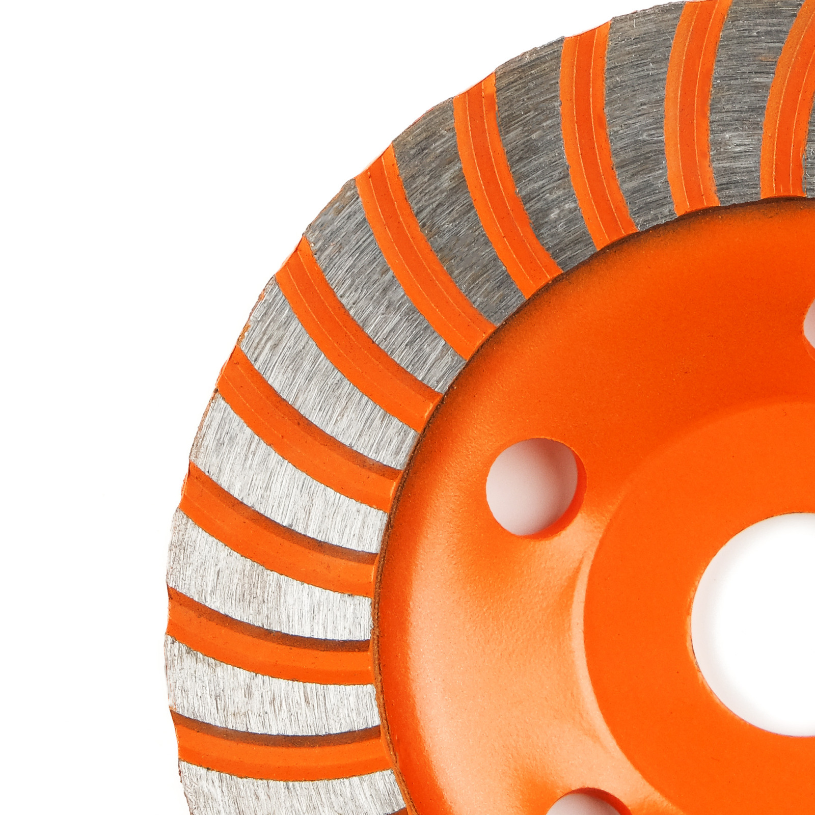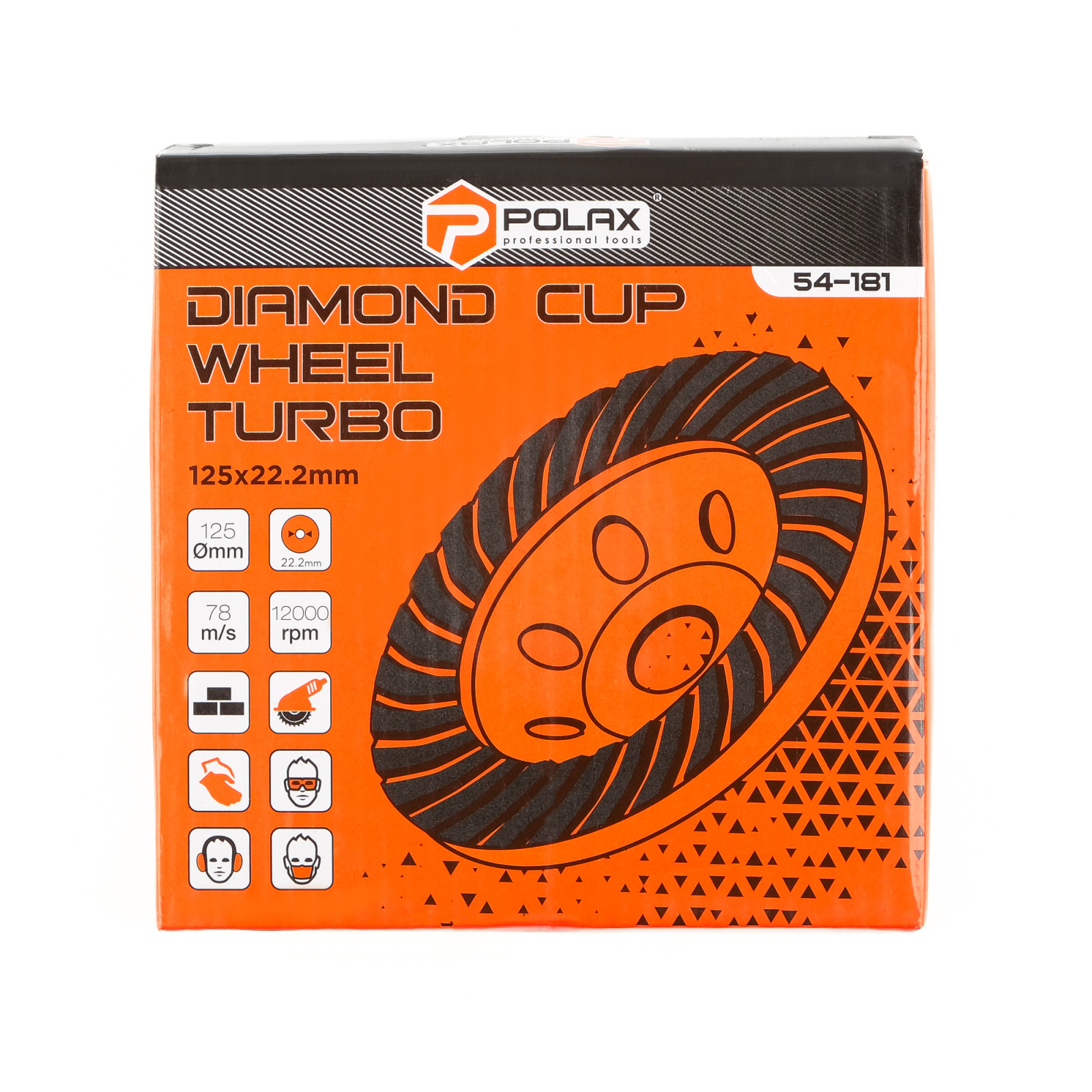 Diamentowa tarcza szlifierska „Turbo” o średnicy 125 mm i otworze montażowym 22,2 mm przeznaczona jest do efektywnego i szybkiego szlifowania betonu, kamienia i innych twardych powierzchni. Specjalna segmentowa konstrukcja zapewnia doskonałe odprowadzanie ciepła i pyłu, wydłużając żywotność narzędzia i poprawiając wydajność.