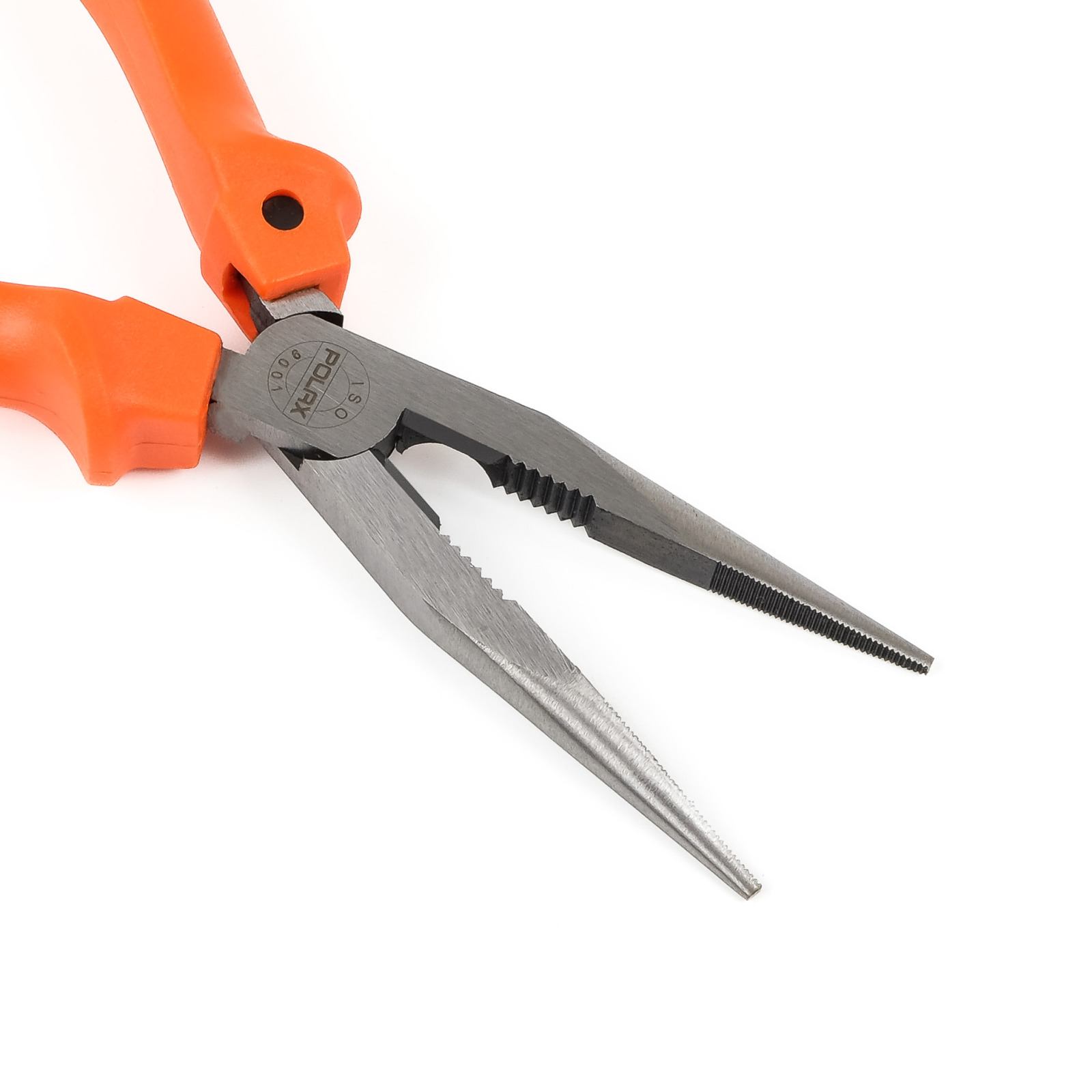 Szczypce wydłużone Polax uniwersalne CR-V 200 mm (35-024) - niezawodne i wielofunkcyjne narzędzie do różnych rodzajów prac. Wykonane z trwałej stali chromowo-wanadowej (CR-V), która zapewnia wysoką odporność na zużycie i trwałość. Wszechstronne, długie szczęki pozwalają na łatwe chwytanie, zginanie i przytrzymywanie części w trudno dostępnych miejscach. Wytrzymałe uchwyty plastikowe zapewniają komfort i bezpieczeństwo podczas pracy. Doskonały wybór dla profesjonalistów i majsterkowiczów, którzy zajmują się naprawą, montażem i konserwacją różnego rodzaju konstrukcji i mechanizmów.