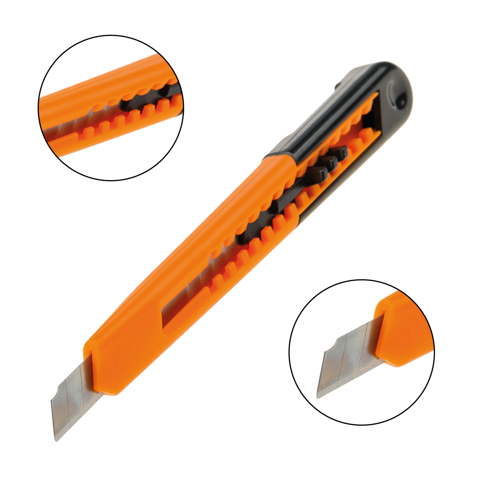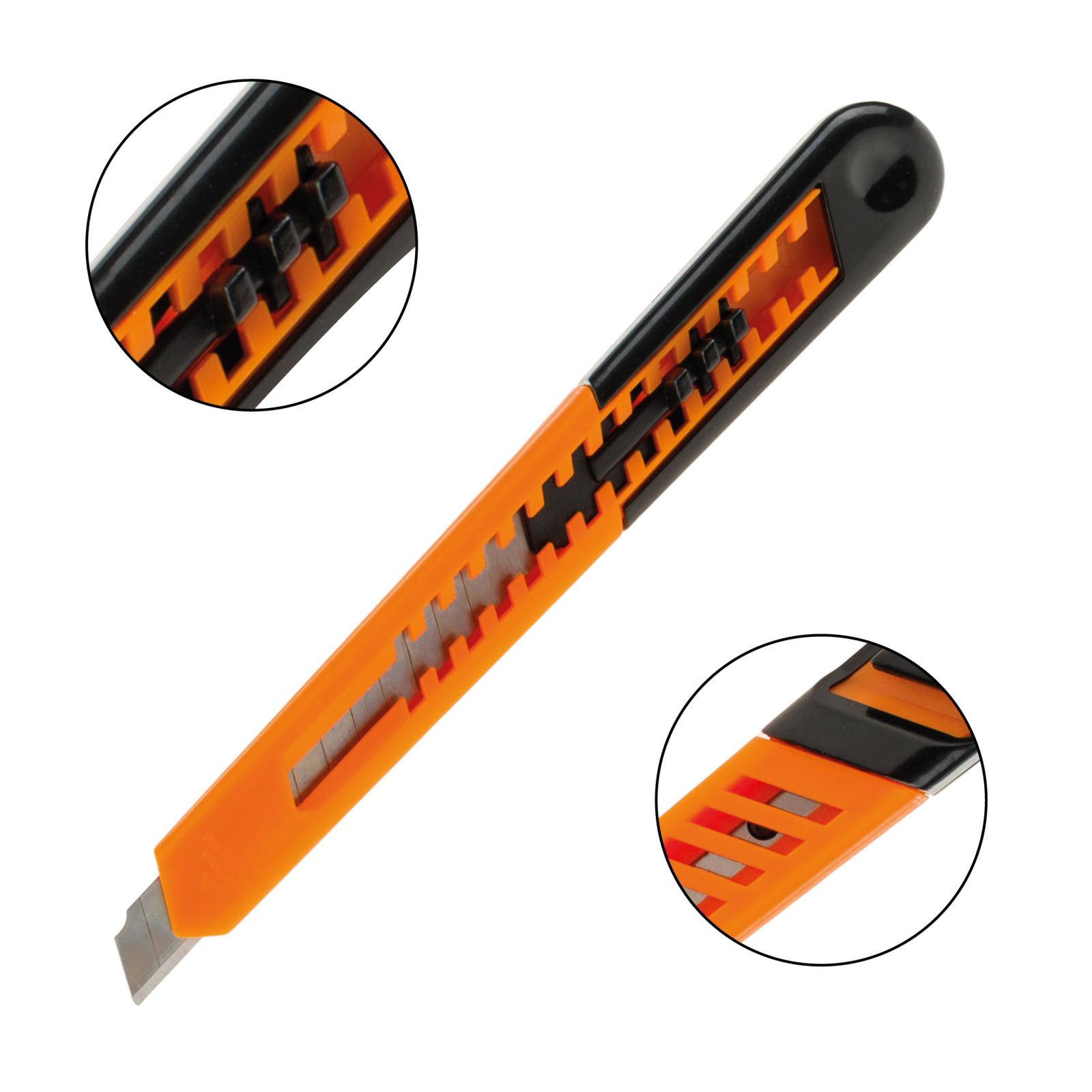 Nóż szczelinowy Polax z odłamywanym ostrzem o długości 9 mm (23-013) to kompaktowe i wygodne narzędzie, idealne do wykonywania delikatnych i precyzyjnych prac. Niewielkie rozmiary noża zapewniają łatwość użytkowania, pozwalając na łatwą kontrolę procesu cięcia. Ostrze z możliwością odłamywania segmentów zapewnia trwałość i ostrość, a wytrzymały korpus z tworzywa sztucznego gwarantuje łatwość i niezawodność podczas pracy. Nadaje się do użytku domowego i profesjonalnego, w tym do cięcia papieru, tektury, folii i innych materiałów.