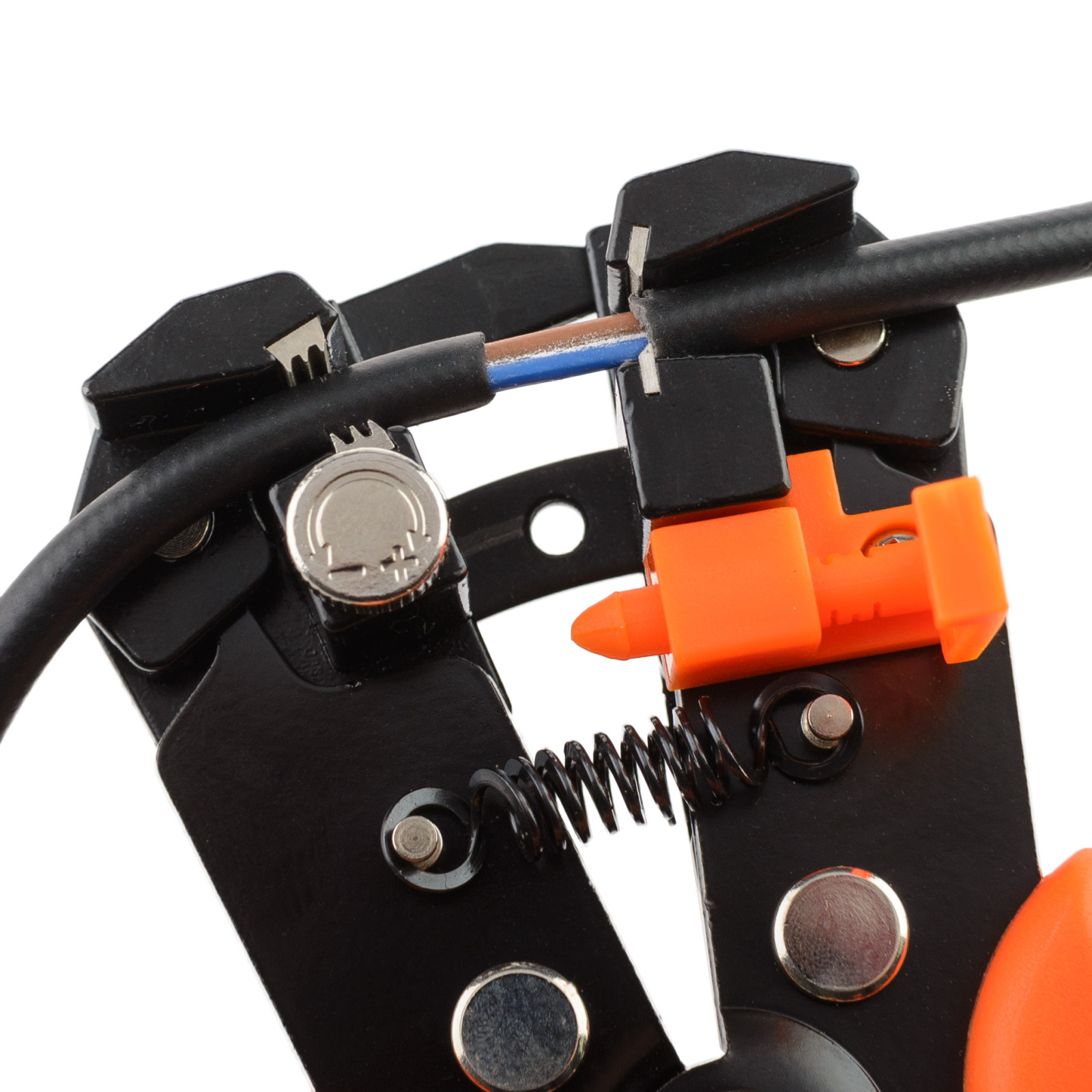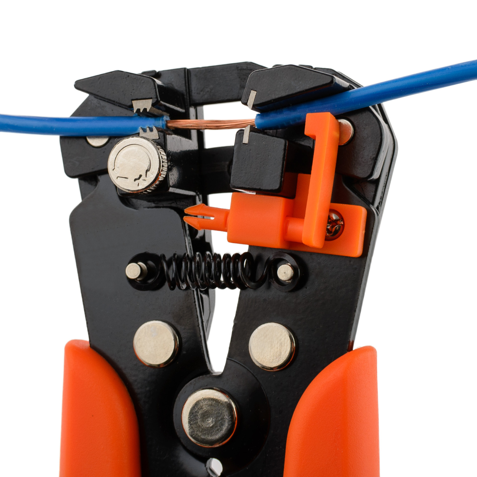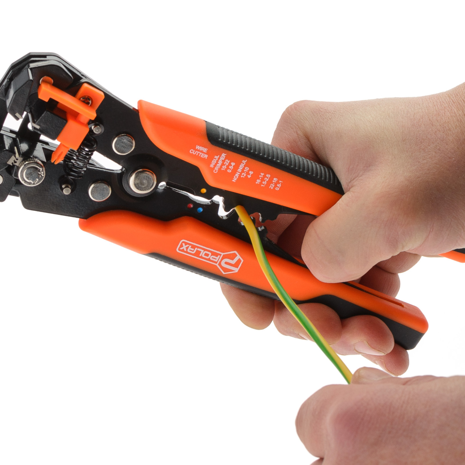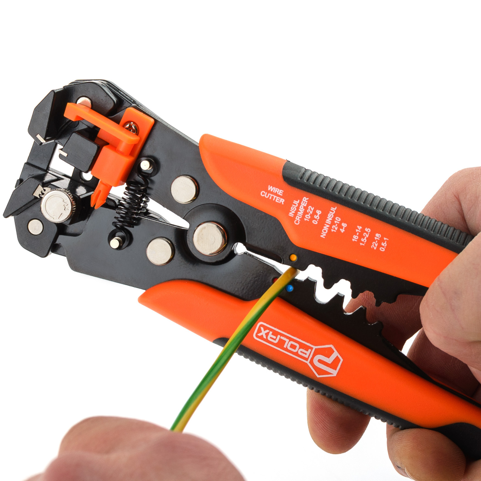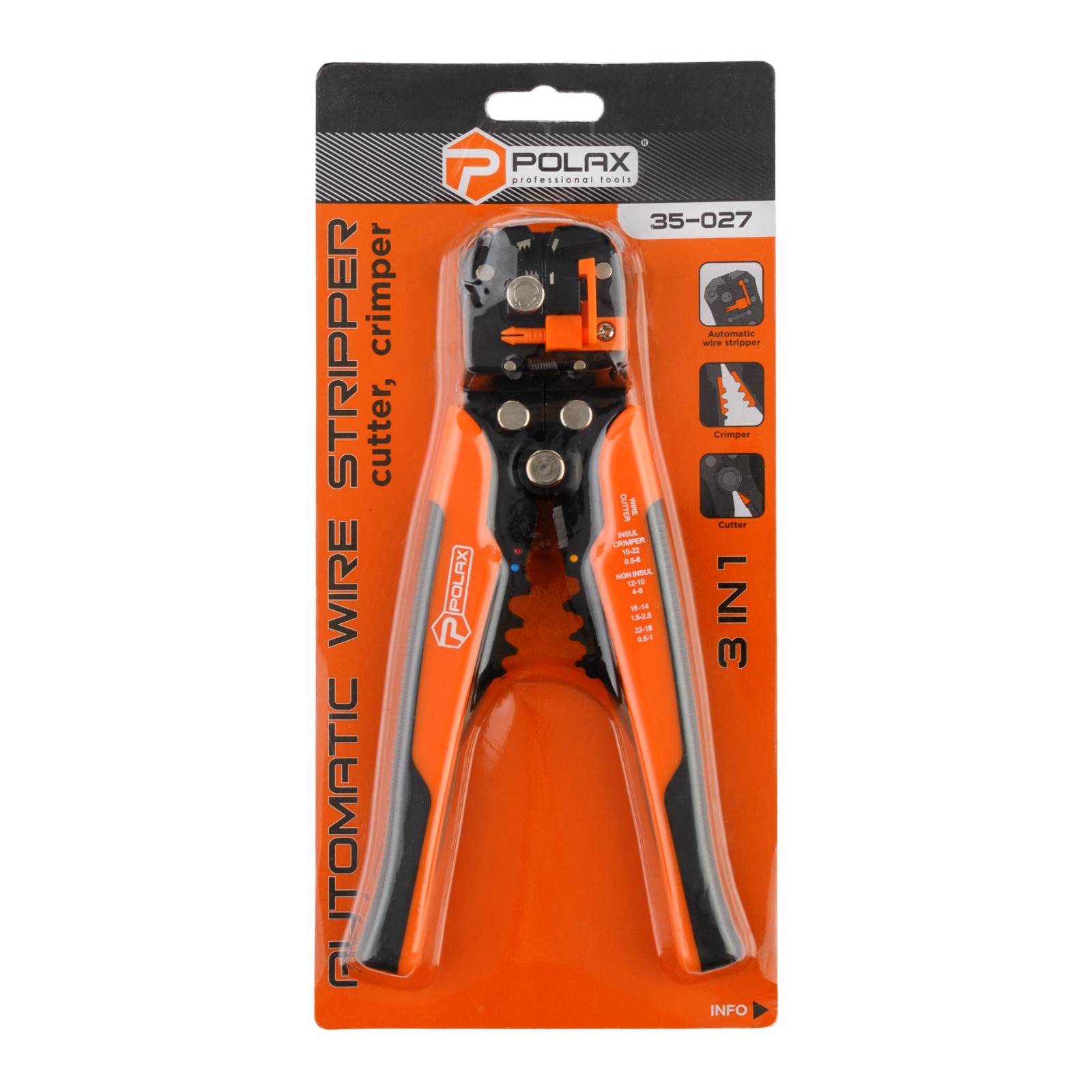 Automatyczny ściągacz izolacji Polax 0,2-6 mm służy do zdejmowania izolacji z przewodów jedno- i wielożyłowych. Usuwa izolację z przewodów o przekroju od 0,2 mm do 6 mm, nie uszkadzając rdzenia. Potrafi również usunąć izolację w środku przewodu, a szerokość szczęk pozwala na zdjęcie izolacji z przewodów o tym samym przekroju w jednej operacji. Narzędzie automatycznie dostosowuje się do drutu o różnych przekrojach. Posiada ogranicznik długości zdejmowania izolacji, obcinak do przewodów o średnicy do 6 mm, listwę do zaciskania różnych typów końcówek oraz regulator siły zdejmowania izolacji. Narzędzie do zdejmowania izolacji jest używane przez elektryków i rzemieślników w celu przyspieszenia montażu instalacji elektrycznych o różnym stopniu złożoności. Stalowa konstrukcja ściągacza ze szczękami odpornymi na zużycie sprawia, że jest on trwały, a wygodny gumowy uchwyt pozwala na komfortową pracę przez długi czas, zarówno zimą, jak i latem. Gumowo-plastikowe uchwyty nie wychładzają się zimą i nie pocą latem.