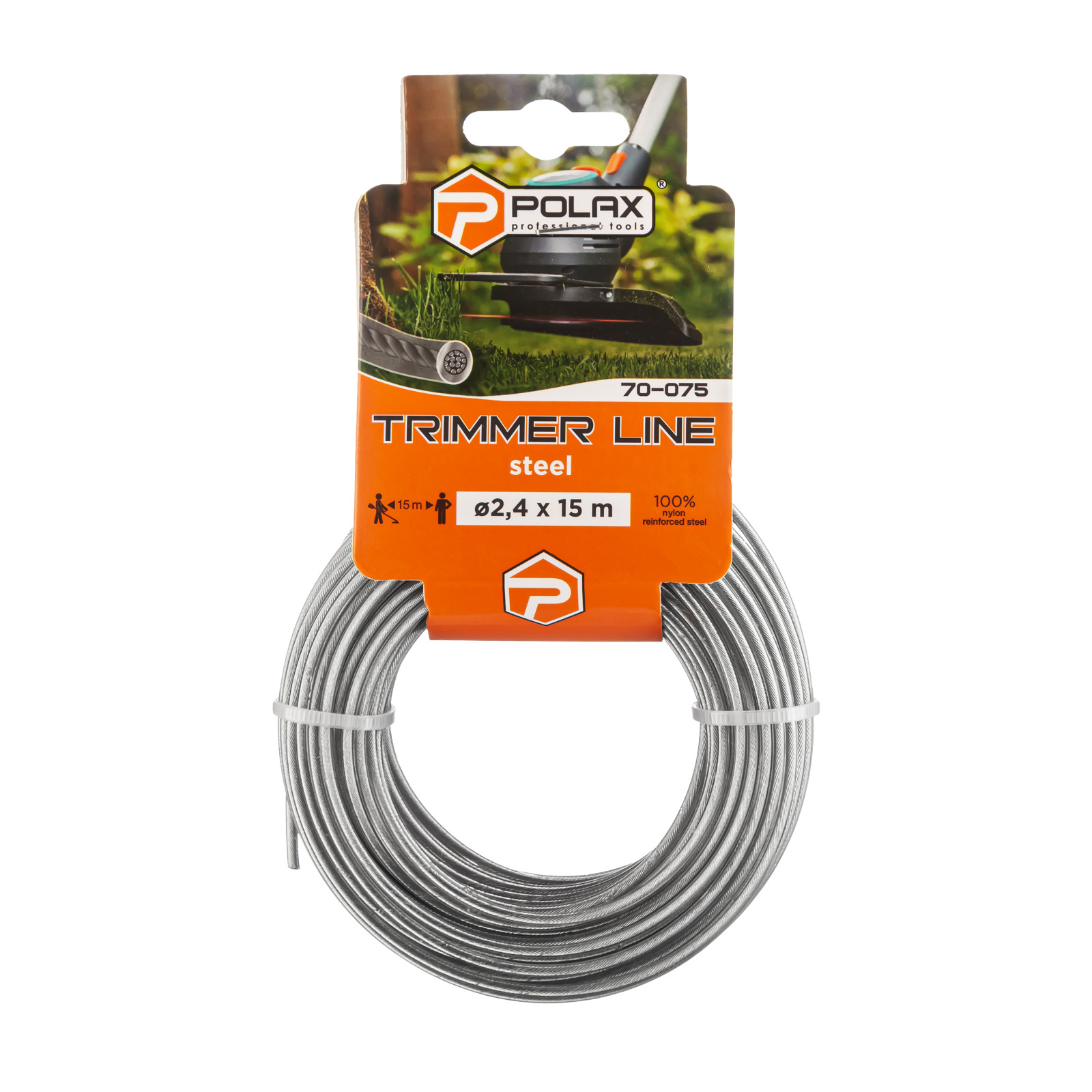 Żyłka tnąca "Steel Cord Circle" przeznaczona jest do koszenia trawy. Wykonane z wysokiej jakości nylonu i wzmocnione rdzeniem stalowym. Okrągły drut ze stalową liną doskonale nadaje się do radzenia sobie z grubymi łodygami chwastów, pokrzyw, łopianu i gęstej trawy. Odporność na zużycie jest pięciokrotnie wyższa niż w przypadku zwykłej żyłki wędkarskiej. Stalowy kord zwiększa wydajność pracy i poprawia produktywność. Podczas pracy należy używać środków ochrony osobistej, okularów i rękawic. Grubość linii dobierana jest zgodnie z parametrami trymera.