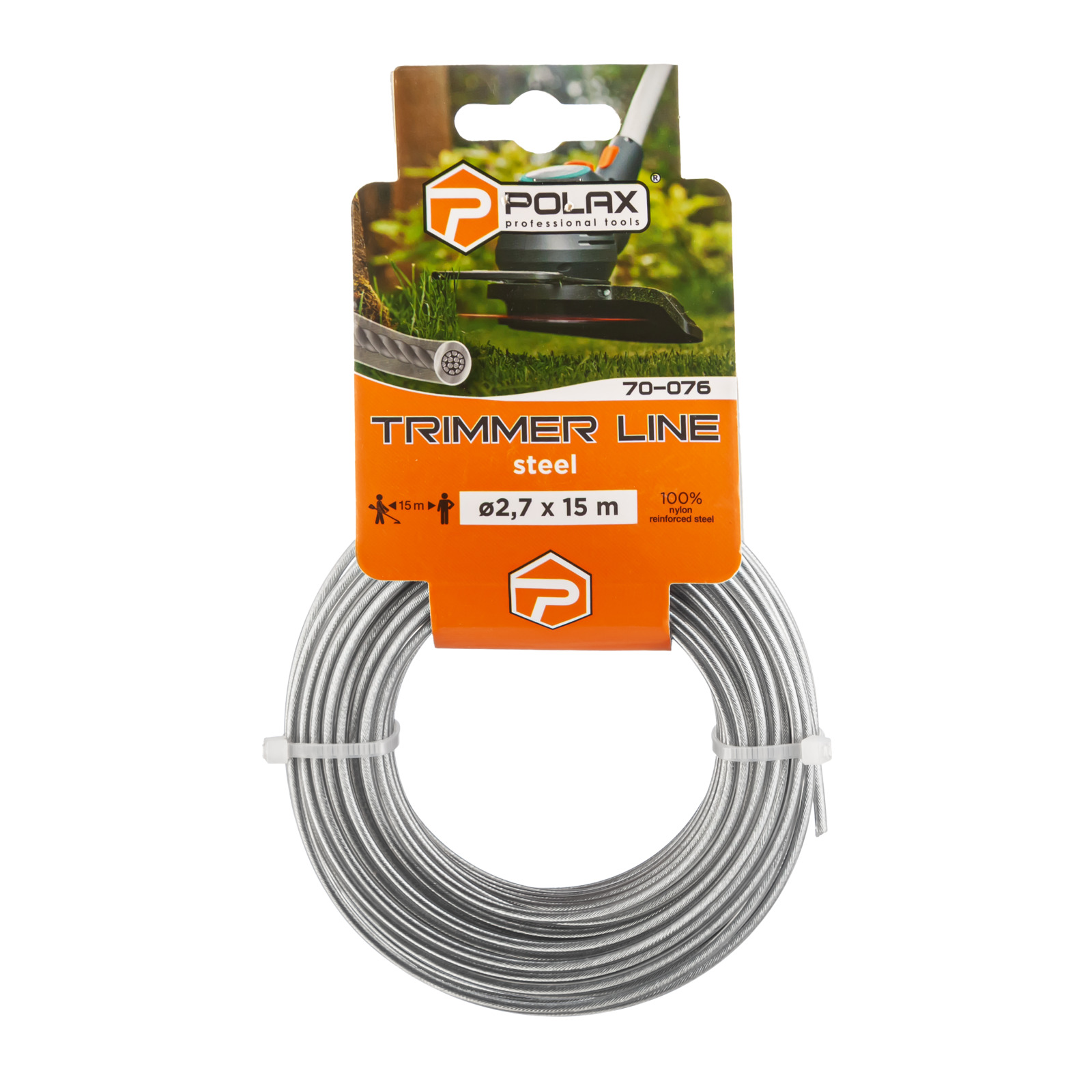 Żyłka tnąca "Steel Cord Circle" przeznaczona jest do koszenia trawy. Wykonane z wysokiej jakości nylonu i wzmocnione rdzeniem stalowym. Okrągły drut ze stalową liną doskonale nadaje się do radzenia sobie z grubymi łodygami chwastów, pokrzyw, łopianu i gęstej trawy. Odporność na zużycie jest pięciokrotnie wyższa niż w przypadku zwykłej żyłki wędkarskiej. Stalowy kord zwiększa wydajność pracy i poprawia produktywność. Podczas pracy należy używać środków ochrony osobistej, okularów i rękawic. Grubość linii dobierana jest zgodnie z parametrami trymera.