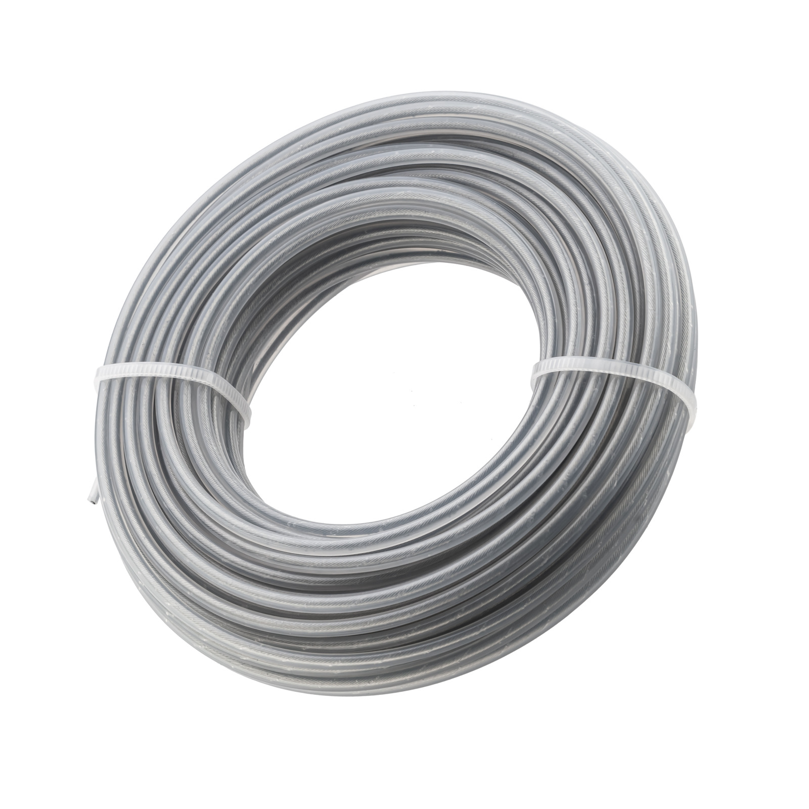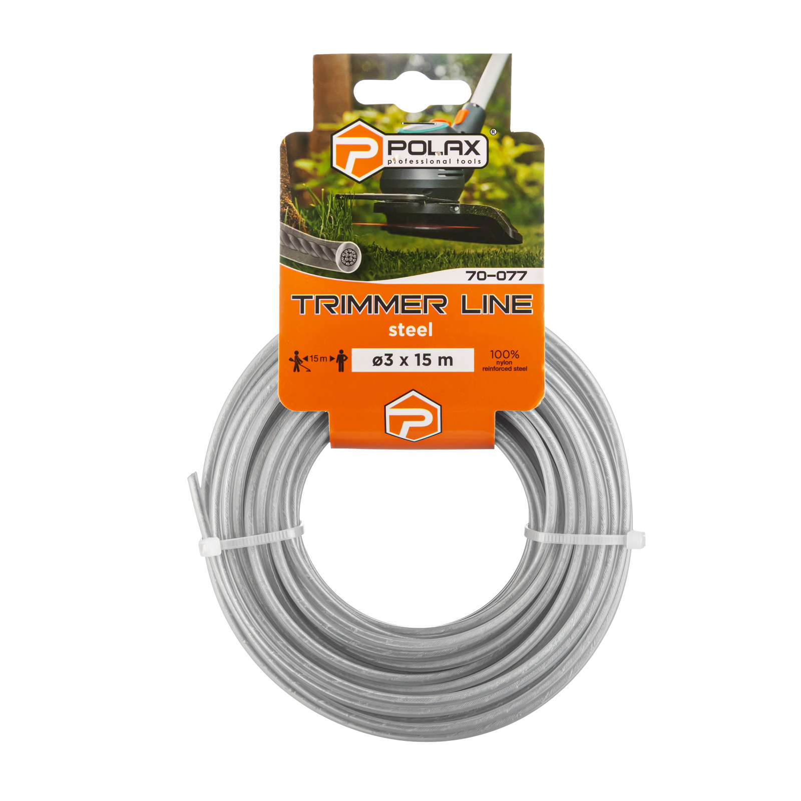 Żyłka tnąca "Steel Cord Circle" przeznaczona jest do koszenia trawy. Wykonane z wysokiej jakości nylonu i wzmocnione rdzeniem stalowym. Okrągły drut ze stalową liną doskonale nadaje się do radzenia sobie z grubymi łodygami chwastów, pokrzyw, łopianu i gęstej trawy. Odporność na zużycie jest pięciokrotnie wyższa niż w przypadku zwykłej żyłki wędkarskiej. Stalowy kord zwiększa wydajność pracy i poprawia produktywność. Podczas pracy należy używać środków ochrony osobistej, okularów i rękawic. Grubość linii dobierana jest zgodnie z parametrami trymera.