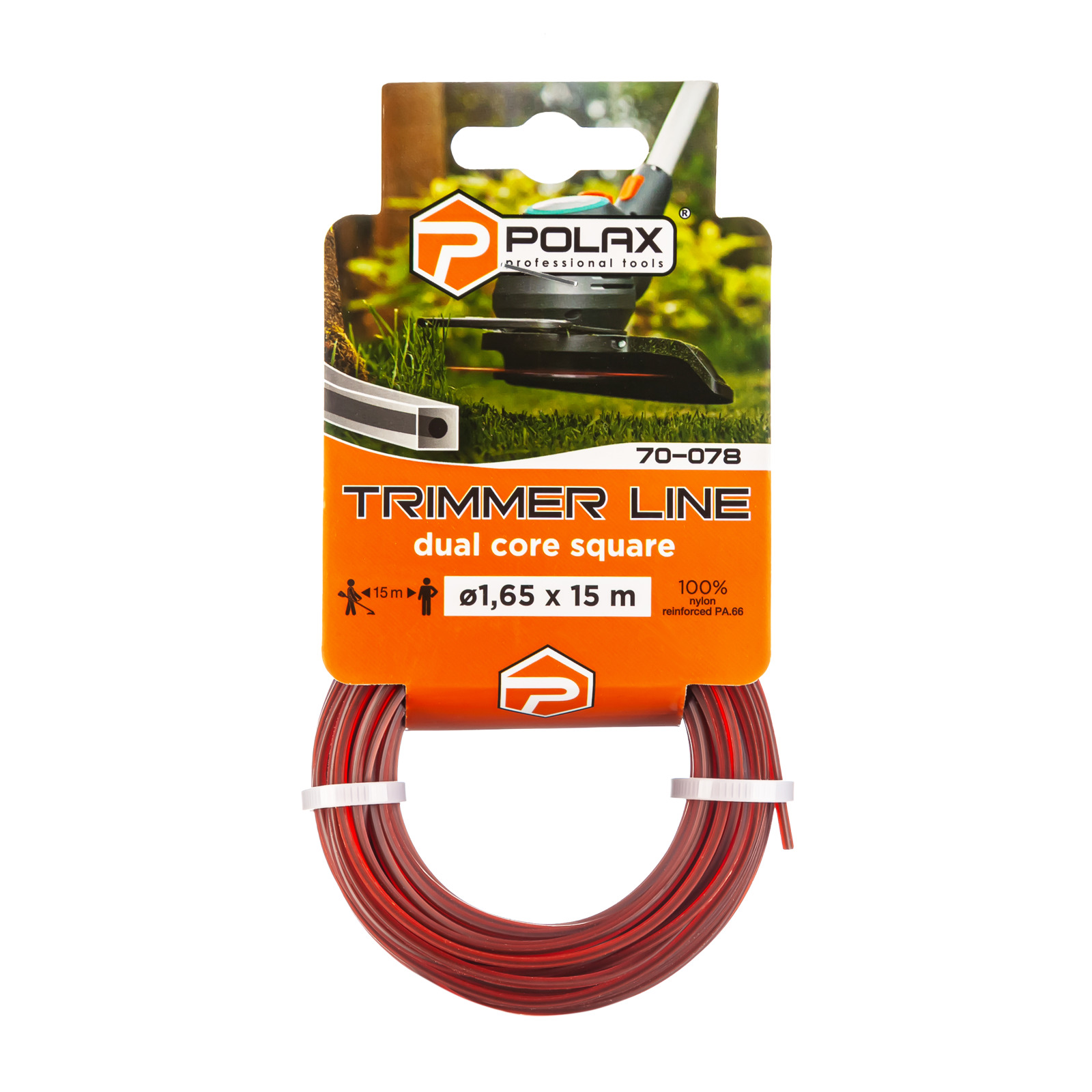 Żyłka tnąca „Square with Cord” przeznaczona jest do koszenia trawy. Wykonane z wysokiej jakości nylonu i wzmocnione rdzeniem nylonowym PA.66. Odporność na zużycie żyłki linkowej jest półtora raza większa niż żyłki zwykłej. Kwadratowe ostrze ma ostre krawędzie, które szybko i wydajnie koszą trawę. Doskonale nadaje się do koszenia gęstej trawy, łopianu, chwastów, łopianu i trawy na kamienistym podłożu. Charakteryzuje się dużą elastycznością i niskim poziomem hałasu. Grubość linii dobierana jest zgodnie z parametrami trymera.