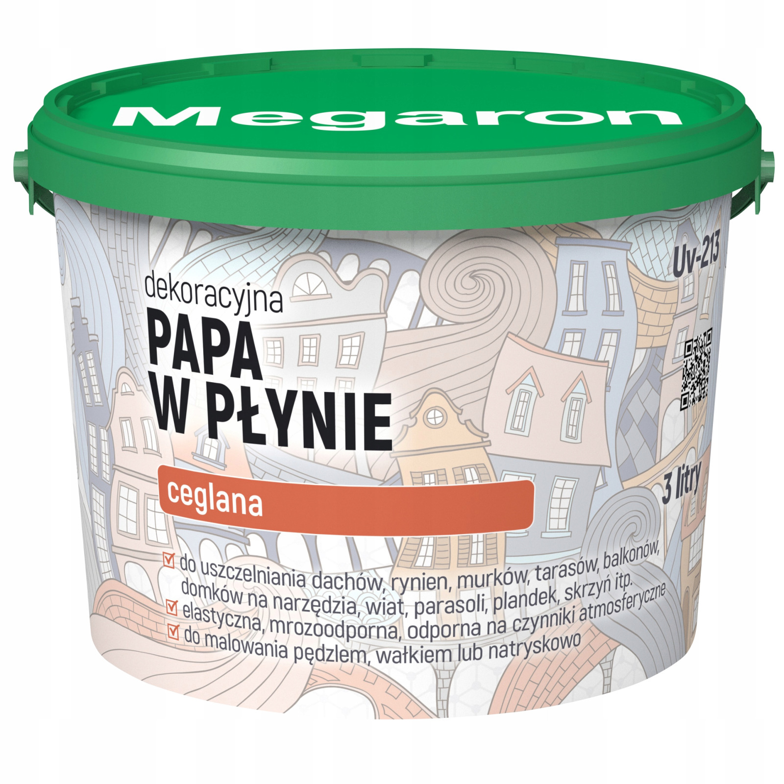 Dekoracyjna Papa w Płynie Megaron jest elastycznym materiałem powłokowym, służącym do zabezpieczania zewnętrznych powierzchni. Papę można zastosować zarówno w celu ochronnym, jak i dekoracyjnym. Pod względem chemicznym stanowi mieszankę surowców mineralnych, dyspersji polimerowej, chemicznych dodatków modyfikujących i wody, o konsystencji gęstej, jednorodnej. Elastyczność oraz wytrzymałość na kontakt z wodą zapewnia wysoką odporność powłoki bez względu na warunki atmosferyczne.
