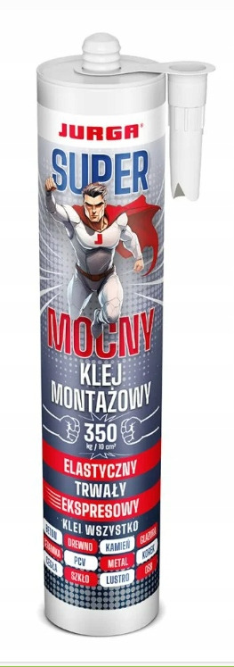 JURGA SUPER MOCNY to zaawansowany technologicznie klej montażowy na bazie polimeru hybrydowego (MS Polymer), idealny do zastosowań budowlanych i wykończeniowych. Dzięki bardzo wysokiej sile klejenia wstępnego, nie wymaga podpierania klejonych elementów, co znacząco ułatwia pracę.