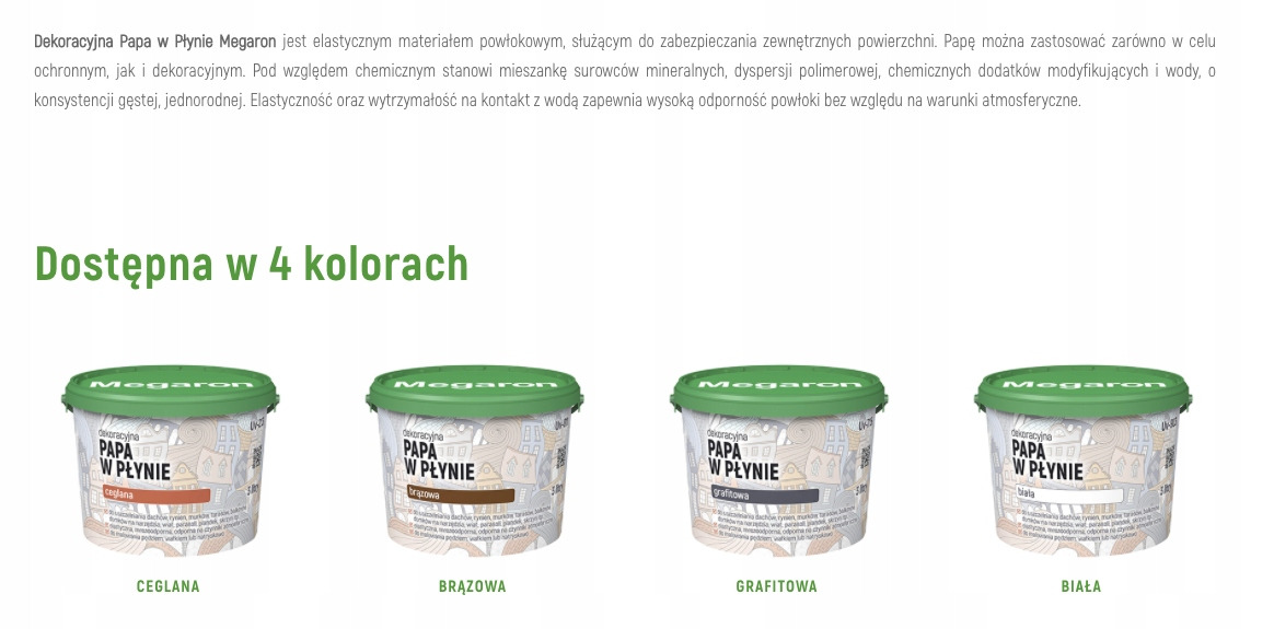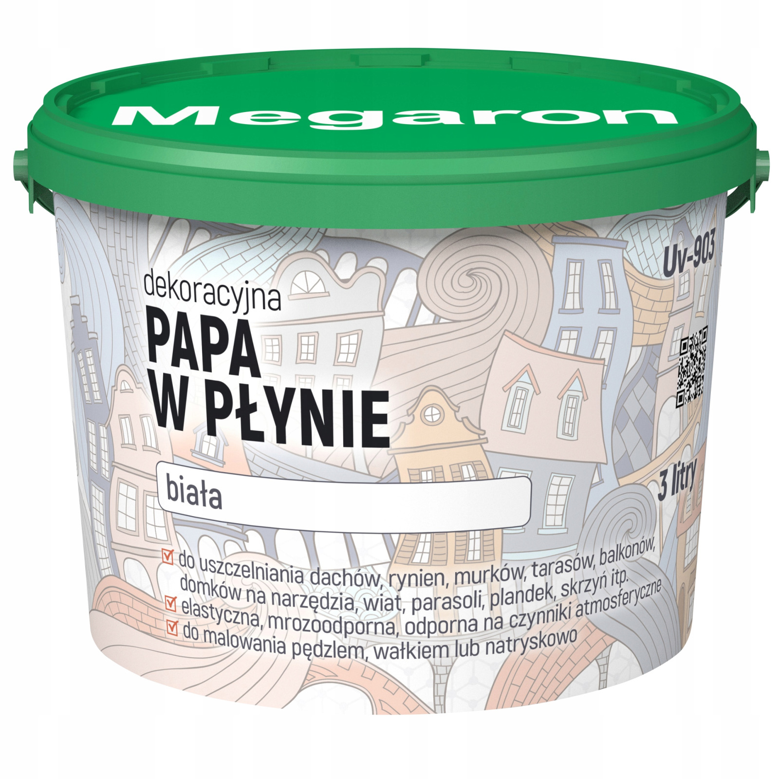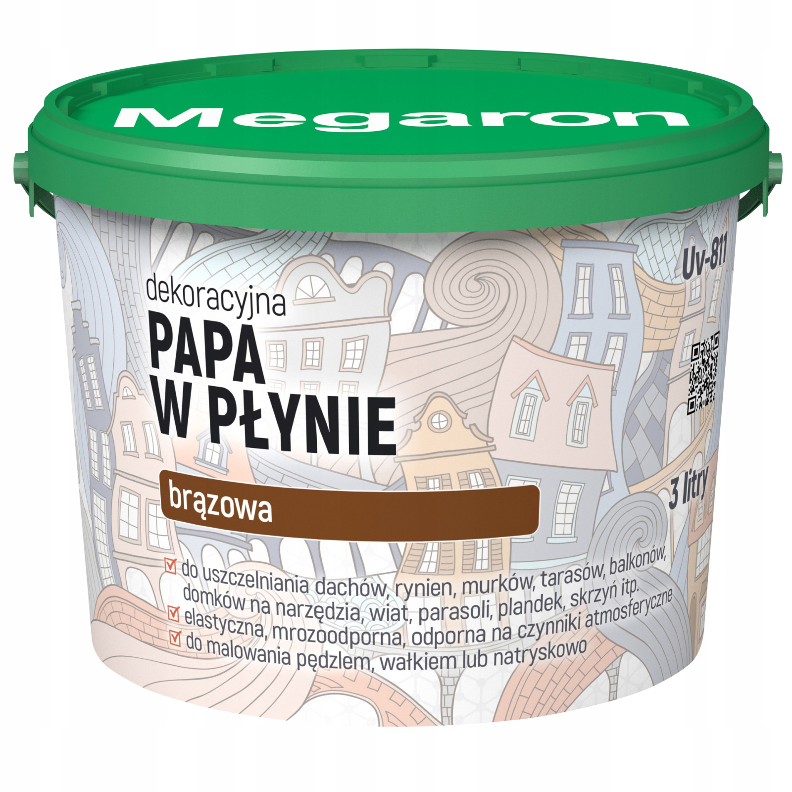 Dekoracyjna Papa w Płynie Megaron jest elastycznym materiałem powłokowym, służącym do zabezpieczania zewnętrznych powierzchni. Papę można zastosować zarówno w celu ochronnym, jak i dekoracyjnym.