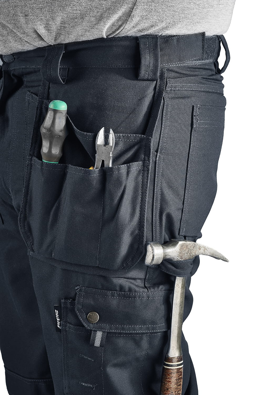Spodnie Dickies Eisenhower Extreme to unowocześniona wersja naszego ponadczasowego klasyka, multi-pocket Eisenhower. Dzięki tkaninie CORDURA® w kluczowych obszarach, zapewniającej dodatkową wytrzymałość, oraz szerokiemu wachlarzowi kieszeni, są one doskonałym wyborem dla profesjonalnego rzemieślnika.