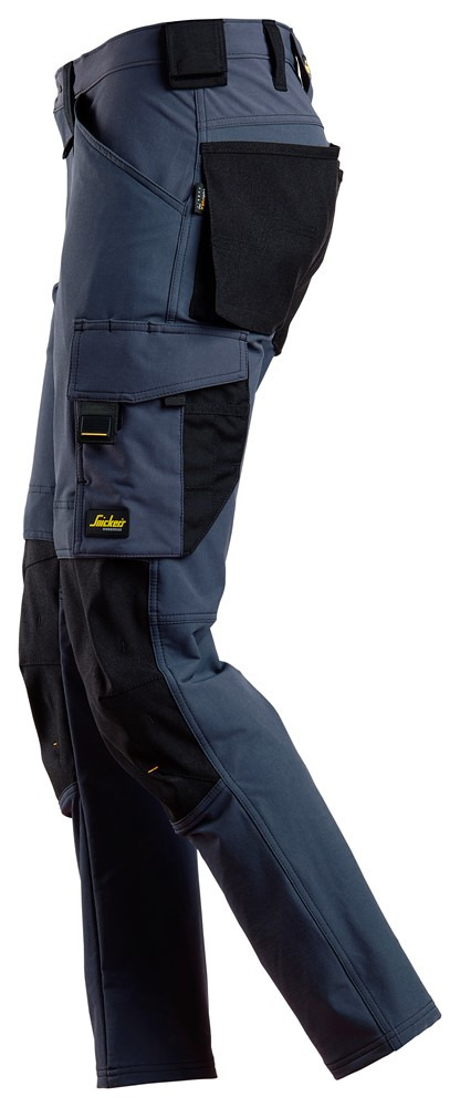 Spodnie robocze do noszenia na co dzień, wykonane z trwałego materiału 4-stronnie rozciągliwego – dla podwyższonego komfortu i zwiększonej swobody ruchów. Elastyczne panele wzmocnione tworzywem CORDURA® przy kolanach polepszają mobilność, podczas gdy profilowane nogawki zapewniają optymalne dopasowanie. Spodnie mają system ochrony kolan KneeGuard™ certyfikowany na zgodność z wymaganiami normy EN 14404, wzmocnioną tworzywem CORDURA® kieszeń na miarę składaną oraz praktyczne uchwyty na narzędzia, umożliwiające ich wydajne i wygodne przenoszenie. Dla zagwarantowania optymalnego ciepła i wentylacji o każdej porze roku spodnie mają w odpowiednich miejscach szczotkowaną stronę wewnętrzną. Dopasowany krój