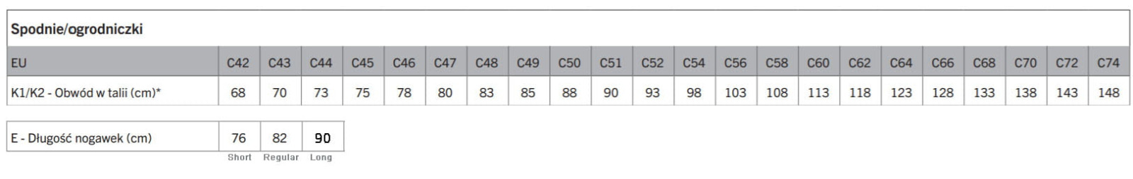 - Standardowo o trzech długościach nogawek, co pozwala na wygodne dopasowanie i optymalne rozmieszczenie detali zgodnie z indywidualnym wyborem.