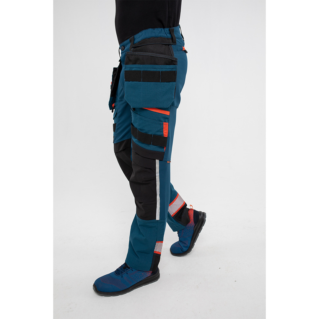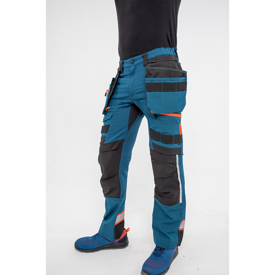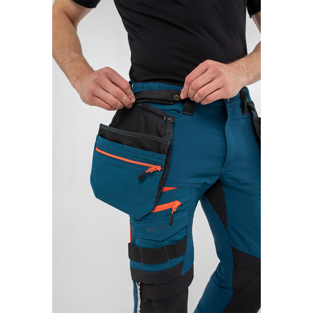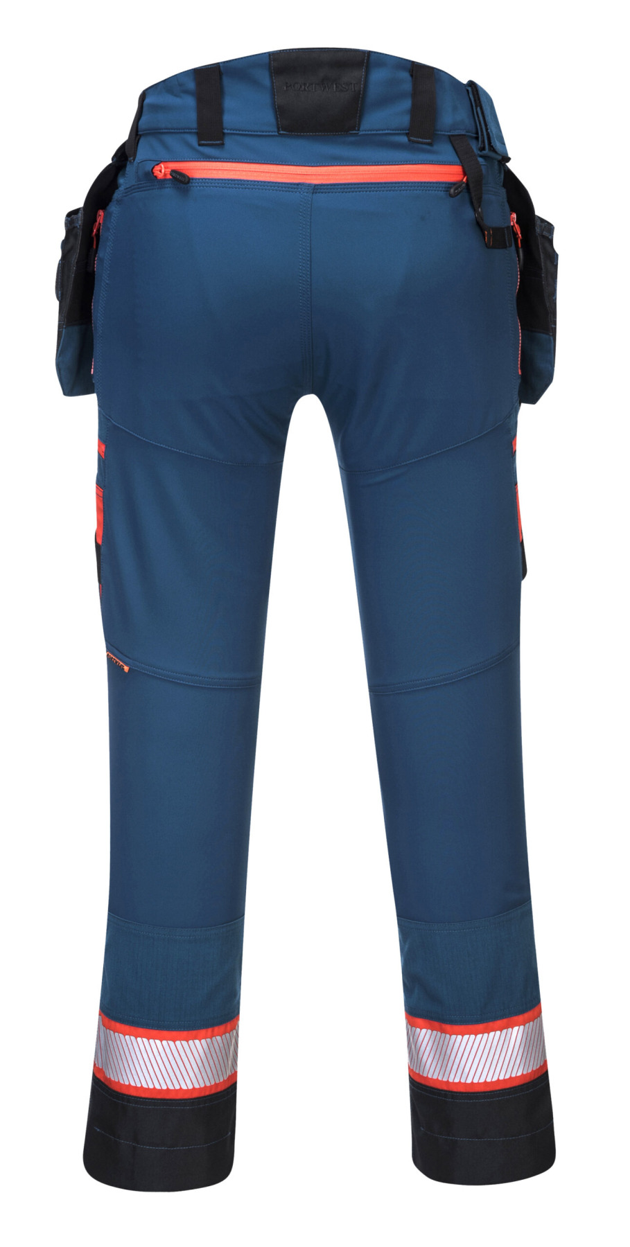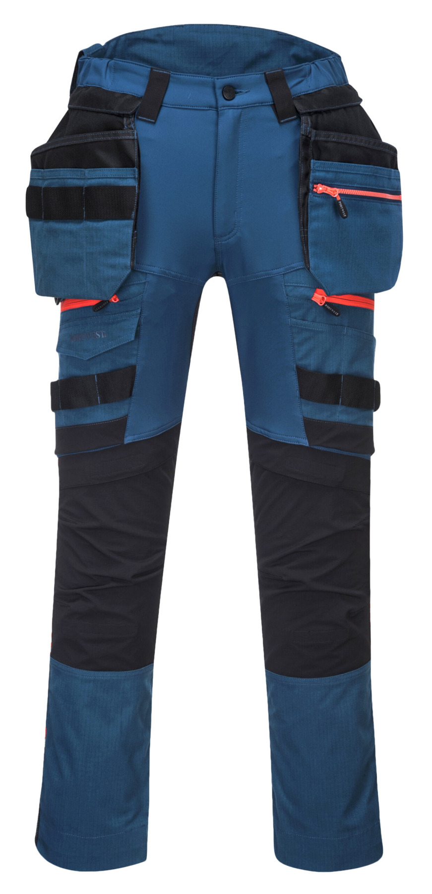 Spodnie z ODPINANYMI KIESZENIAMI KABUROWYMI DX4 są ergonomicznie zaprojektowane i wykorzystują dynamiczne rozciągliwe tkaniny STRETCH 4X, aby zapewnić maksymalny zakres ruchów podczas pracy. Spodnie posiadają wysoki stan w pasie z tyłu i są elastyczne z boku zapewniającą ochronę we wszystkich pozycjach roboczych. Wstępnie uformowane i ładowane od góry oraz regulowane kieszenie na nakolanniki, obszerne przednie kieszenie i wielofunkcyjne zapinane na zamek kieszenie na udach zapewniają bezpieczne przechowywanie. Potrójne szwy oferują najwyższą trwałość.