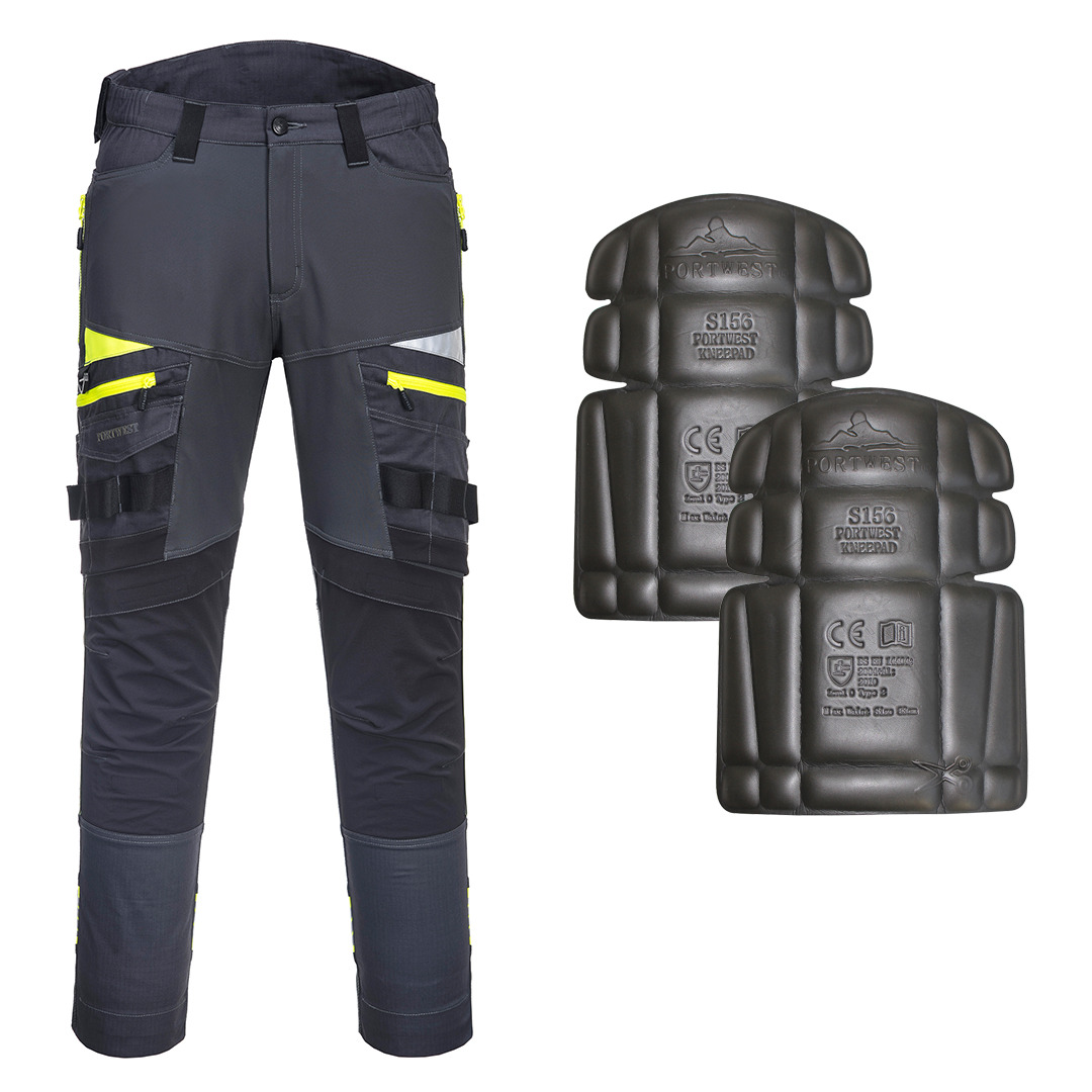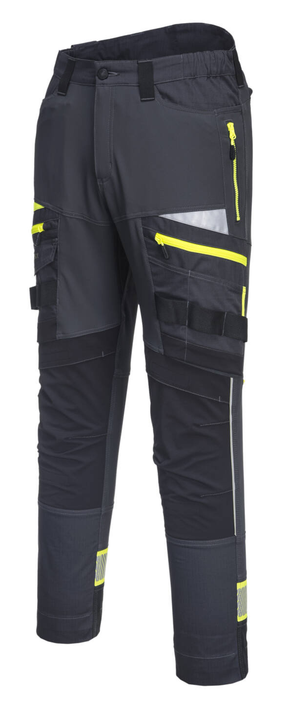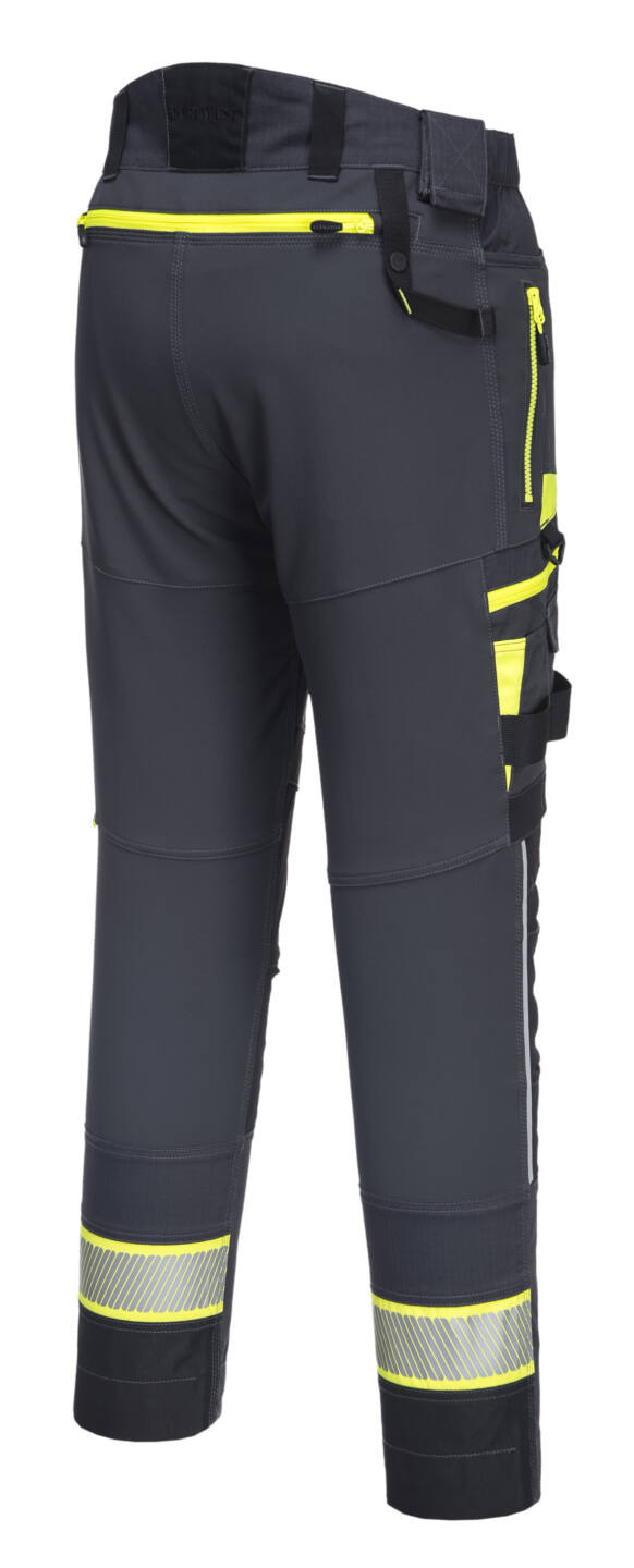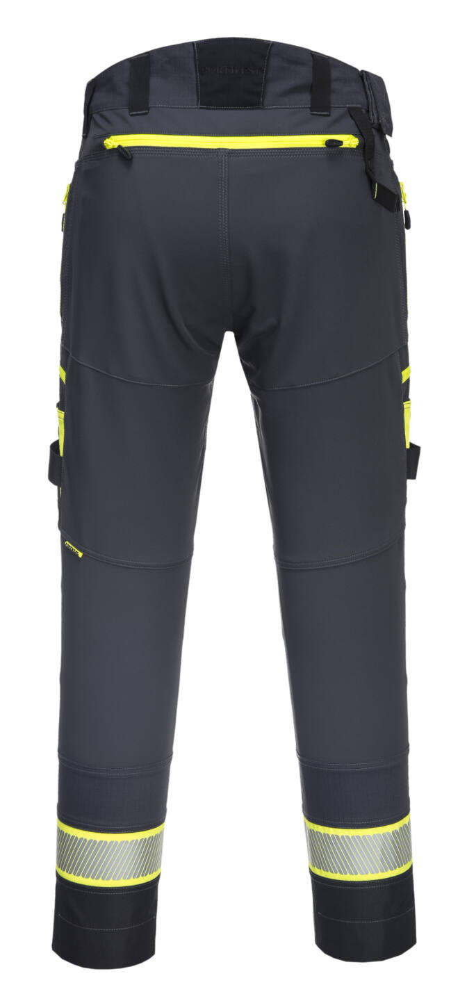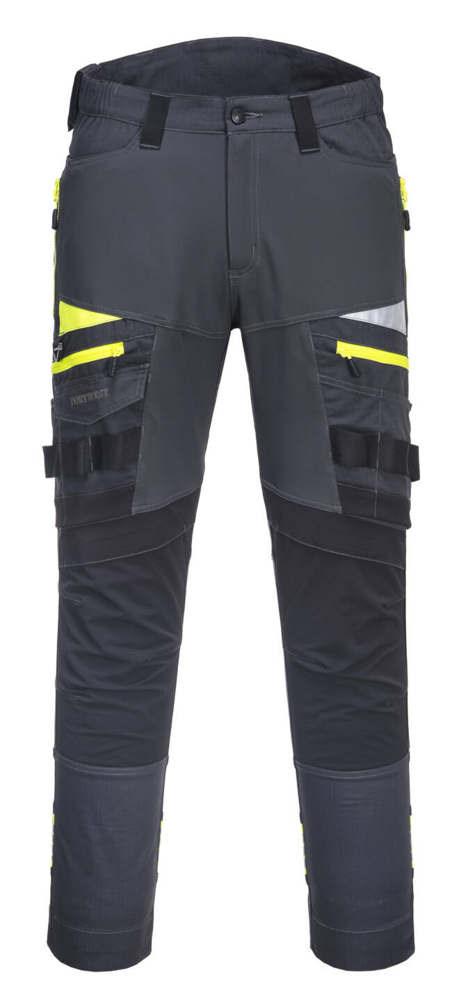 Spodnie robocze DX4 są ergonomicznie zaprojektowane i wykorzystują dynamiczne rozciągliwe tkaniny 4X, aby zapewnić maksymalny zakres ruchów podczas pracy. Spodnie posiadają wysoki stan w pasie z tyłu i są elastyczne z boku zapewniającą ochronę we wszystkich pozycjach roboczych. Wstępnie uformowane i ładowane od góry oraz regulowane kieszenie na nakolanniki, obszerne przednie kieszenie i wielofunkcyjne zapinane na zamek kieszenie na udach zapewniają bezpieczne przechowywanie. Potrójne szwy oferują najwyższą trwałość.