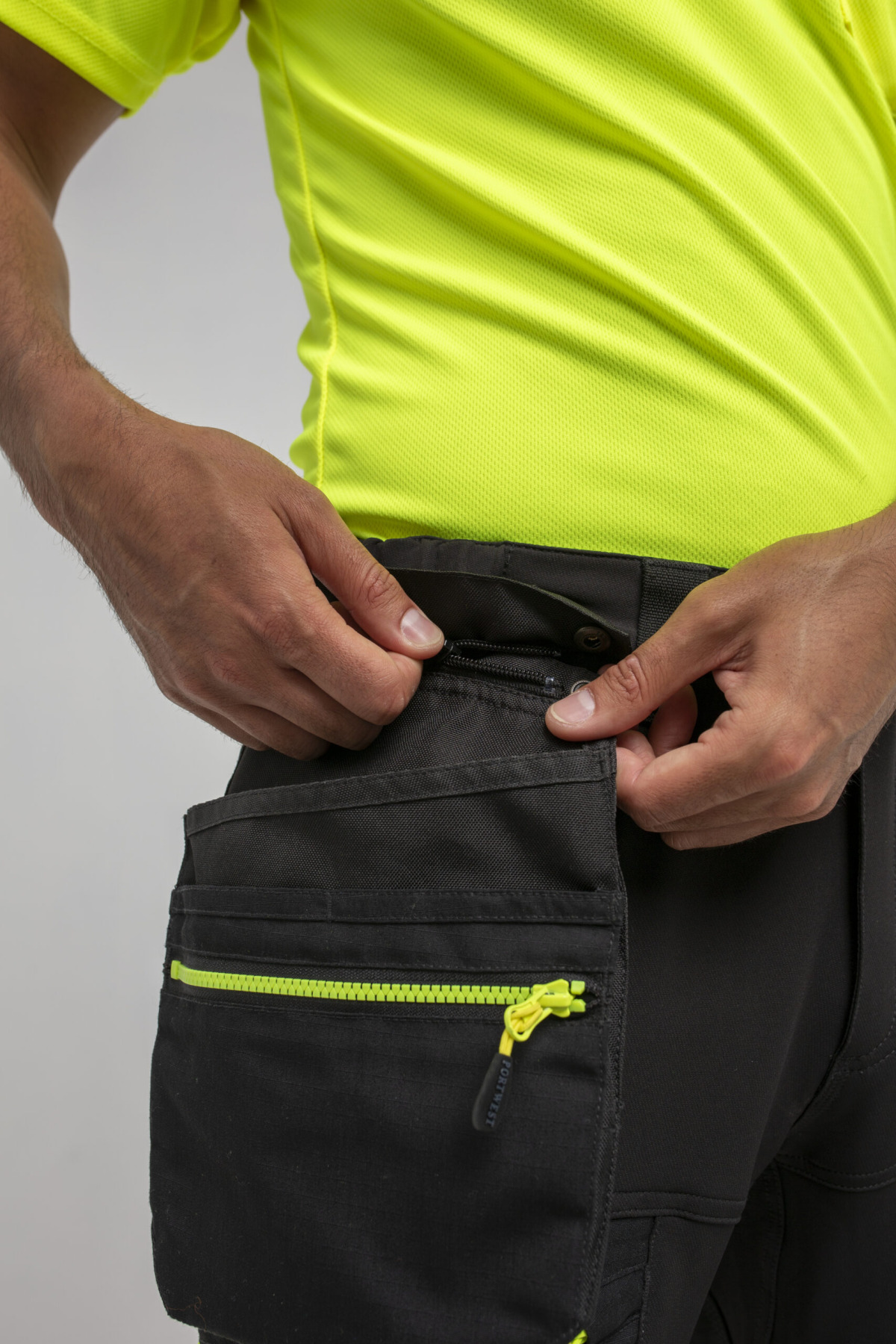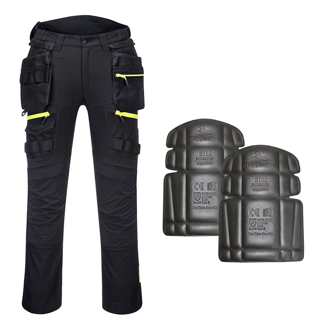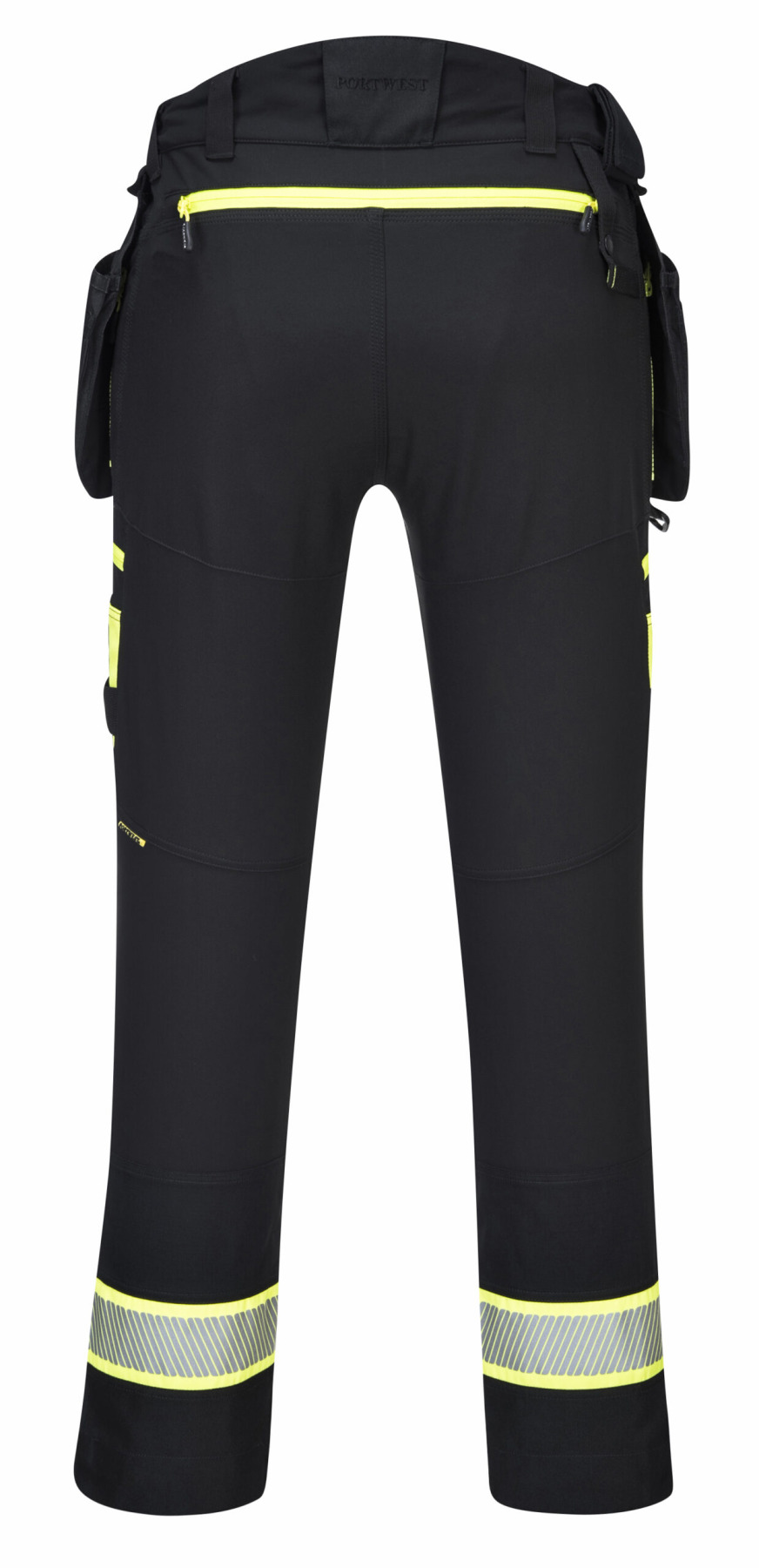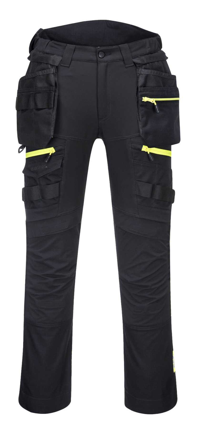 Spodnie z ODPINANYMI KIESZENIAMI KABUROWYMI DX4 są ergonomicznie zaprojektowane i wykorzystują dynamiczne rozciągliwe tkaniny STRETCH 4X, aby zapewnić maksymalny zakres ruchów podczas pracy. Spodnie posiadają wysoki stan w pasie z tyłu i są elastyczne z boku zapewniającą ochronę we wszystkich pozycjach roboczych. Wstępnie uformowane i ładowane od góry oraz regulowane kieszenie na nakolanniki, obszerne przednie kieszenie i wielofunkcyjne zapinane na zamek kieszenie na udach zapewniają bezpieczne przechowywanie. Potrójne szwy oferują najwyższą trwałość.