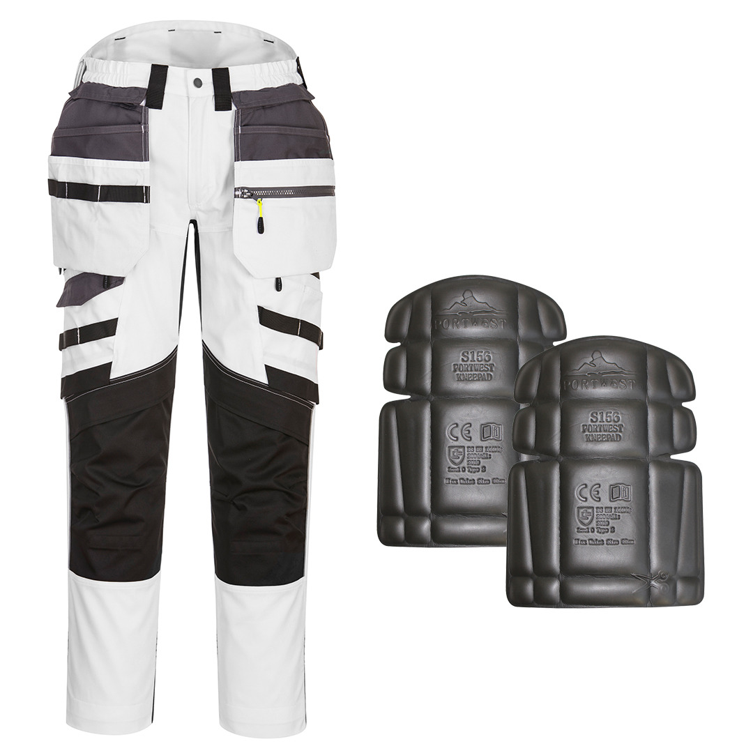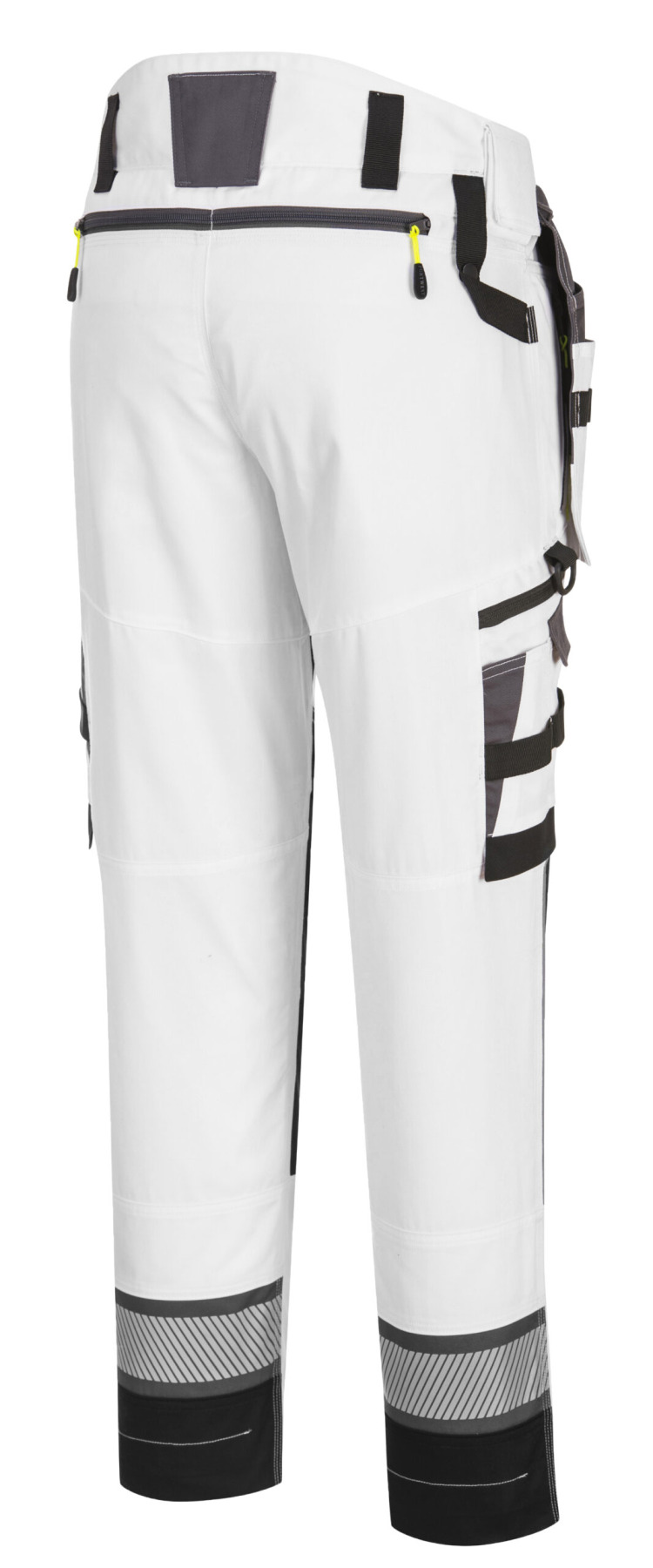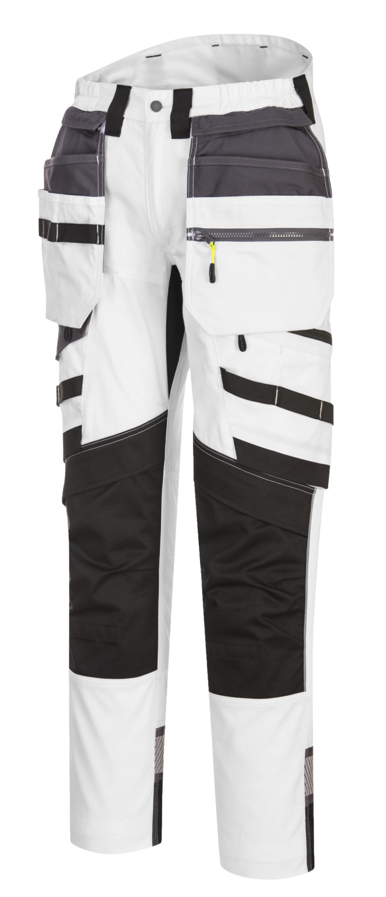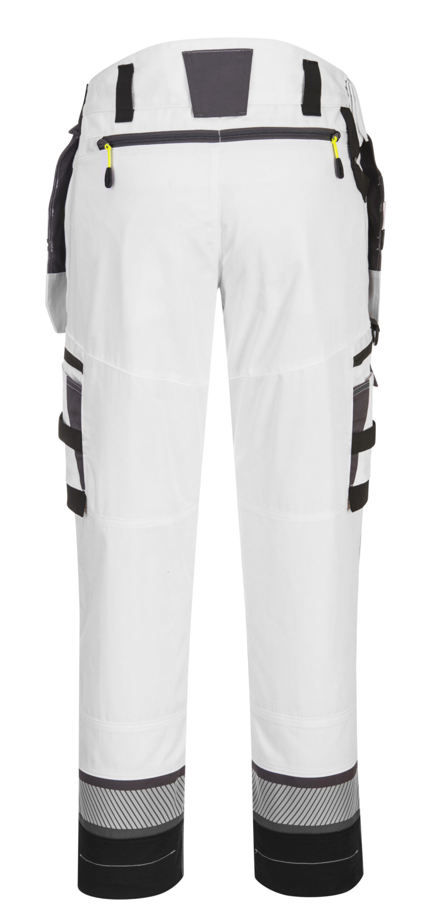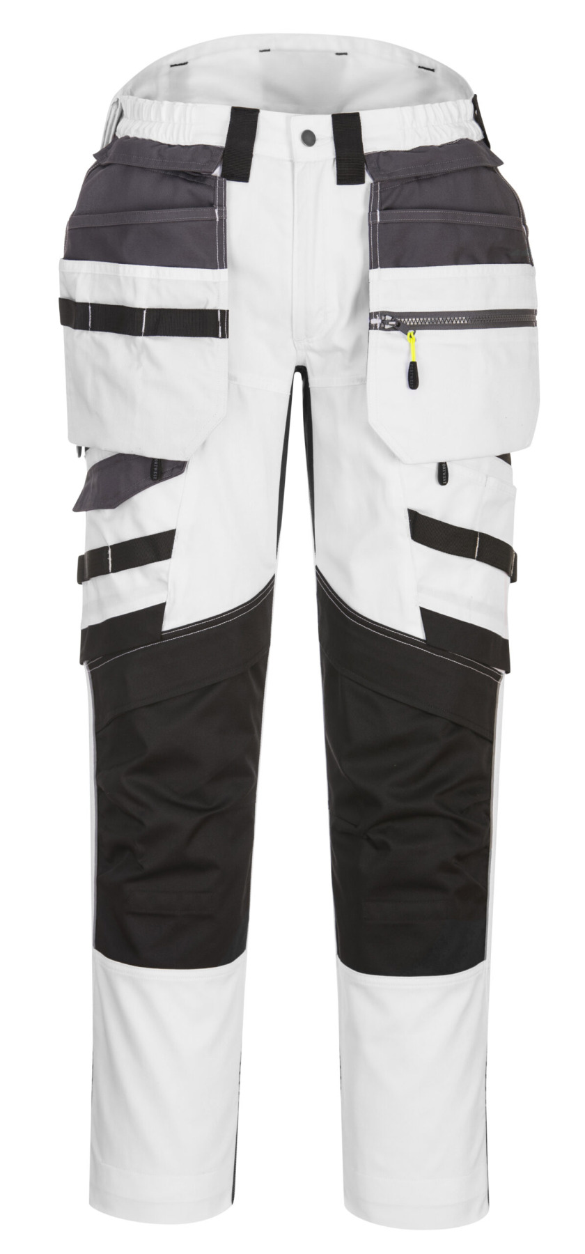 Spodnie z ODPINANYMI KIESZENIAMI KABUROWYMI DX4 są ergonomicznie zaprojektowane i wykorzystują dynamiczne rozciągliwe tkaniny STRETCH 4X, aby zapewnić maksymalny zakres ruchów podczas pracy. Spodnie posiadają wysoki stan w pasie z tyłu i są elastyczne z boku zapewniającą ochronę we wszystkich pozycjach roboczych. Wstępnie uformowane i ładowane od góry oraz regulowane kieszenie na nakolanniki, obszerne przednie kieszenie i wielofunkcyjne zapinane na zamek kieszenie na udach zapewniają bezpieczne przechowywanie. Potrójne szwy oferują najwyższą trwałość.