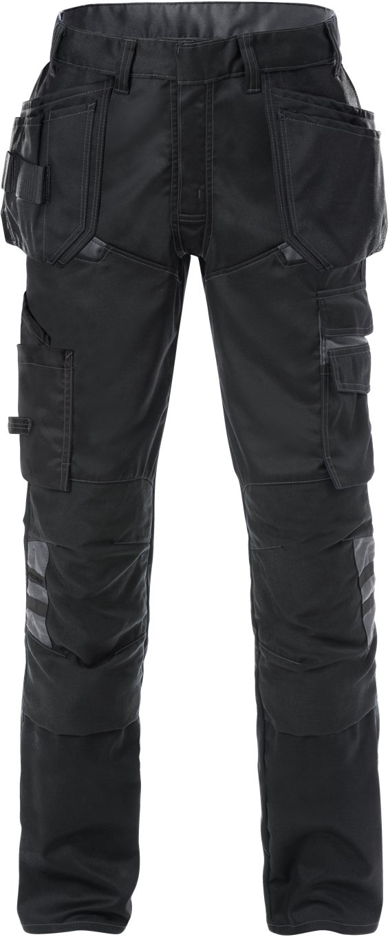 - CORDURA ®-wzmocniona kieszeń na miarkę z kieszenią na narzędzia, kieszonką na długopis oraz guzikiem i pętelką na nóż pochwowy,