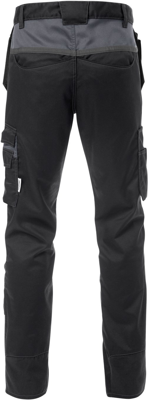 - 2 luźno zwisające kieszenie wzmacniane CORDURA®, jedna z 3 mniejszymi kieszeniami i pętlą na narzędzia i jedna z dodatkową kieszenią,