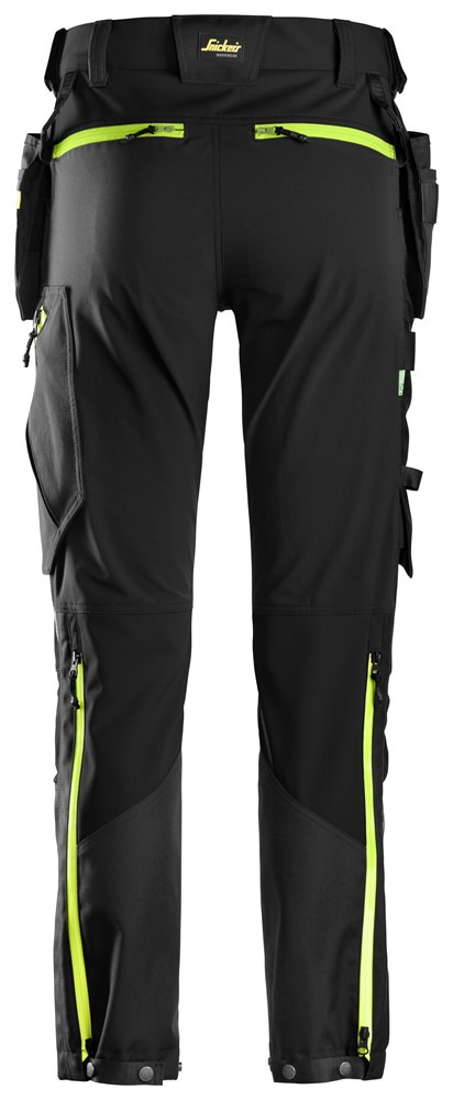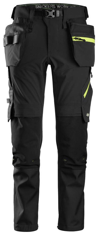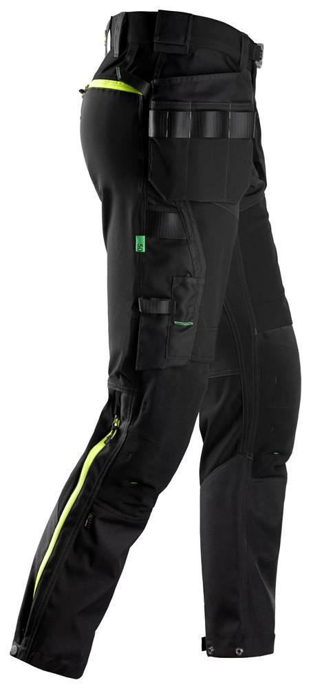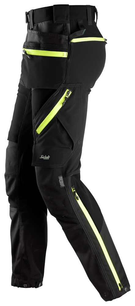 Elastyczne spodnie robocze z chroniącego przed wiatrem 4-kierunkowo rozciągliwego materiału stretch softshell Schoeller®, z 3-warstwowym wzmocnieniem z materiału CORDURA® w dolnej części nogawek dla zwiększenia trwałości i polepszenia ochrony w mokrym otoczeniu. System KneeGuard™ z włóknem full stretch DuPont™ Armortex® Kevlar® podwyższa skuteczność ochrony i zwiększa swobodę ruchów. Spodnie wyposażone w zintegrowany, ale wyjmowalny pasek z klamrą Duraflex® oraz dwustronne zamki błyskawiczne przy końcach nogawek.