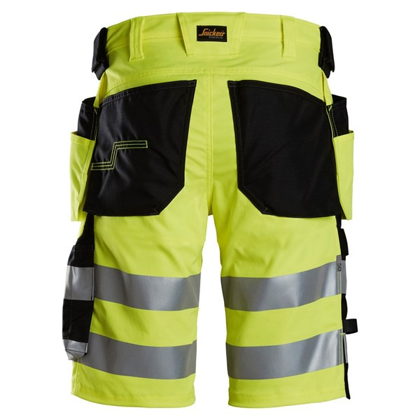 6135 Spodnie krótkie odblaskowe Stretch z workami kieszeniowymi, EN20471/1 Snickers w kolorze żółtym
