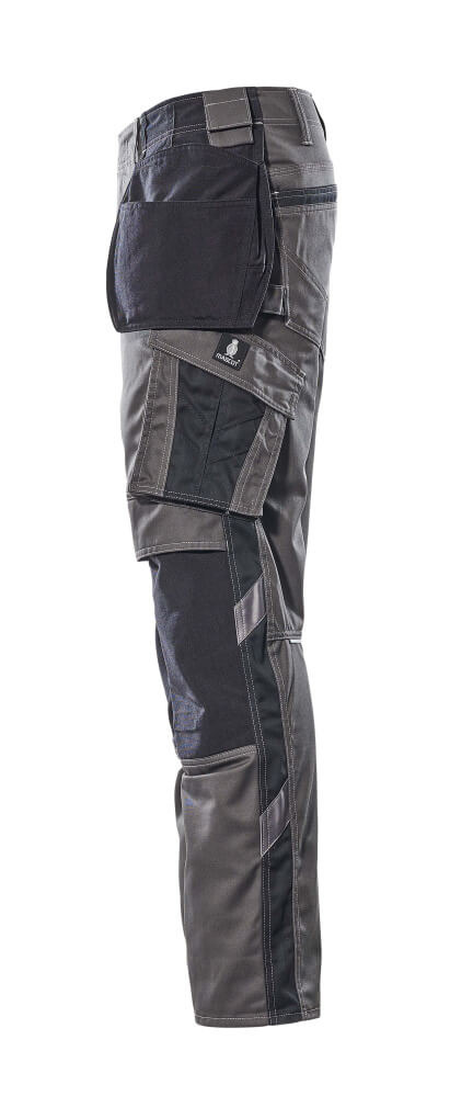 - Certyfikowane do użytku z wkładkami ochronnymi MASCOT typu SHORT lub LONG (wysokość kieszeni na kolanach jest regulowana).